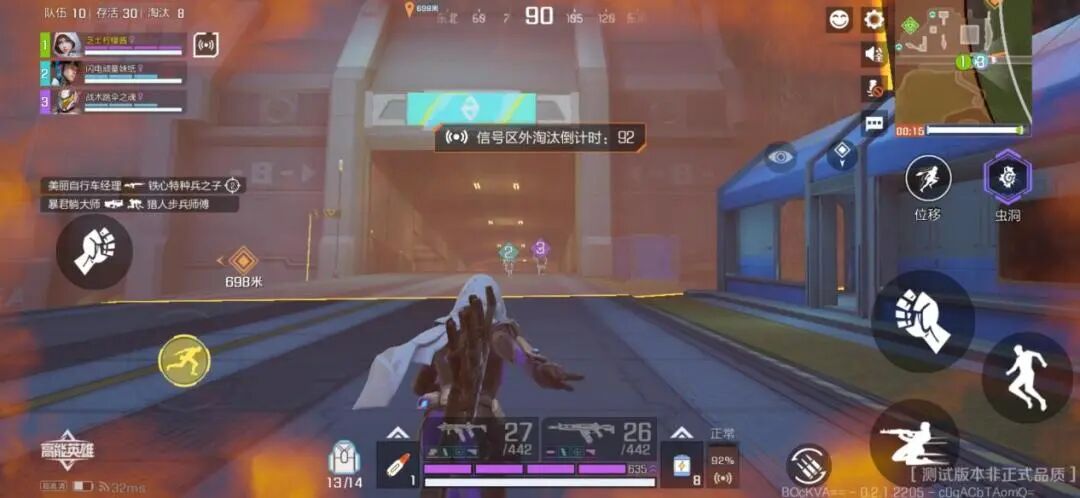 信号值,英雄的初始信号值为100,当信号区边缘到来时,玩家需要及时赶往下一处信号区,否则暴露在信号区外会持续扣除信号值,随着时间的推移,扣除信号值的速度会越来越快,所以这里推荐各位及时跑路,打架也得在信号区内打。当然,医疗箱也可以恢复信号值哦!