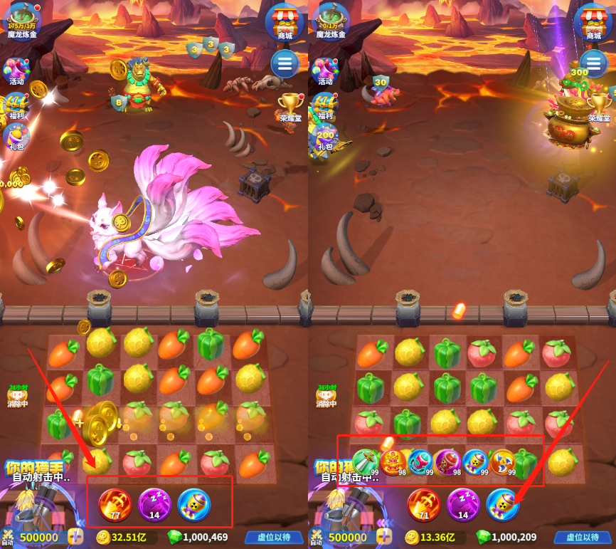 ①在水果消除正下方的道具栏中,点击即可使用
