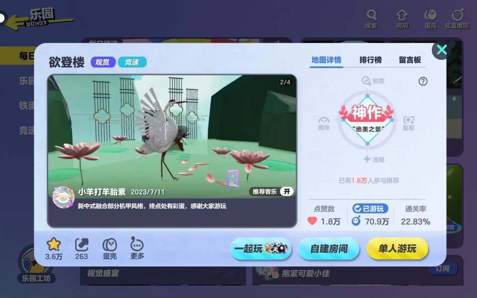 【蛋仔地图推荐】#申请精华 地图名:欲登楼 作者:小羊打羊胎素