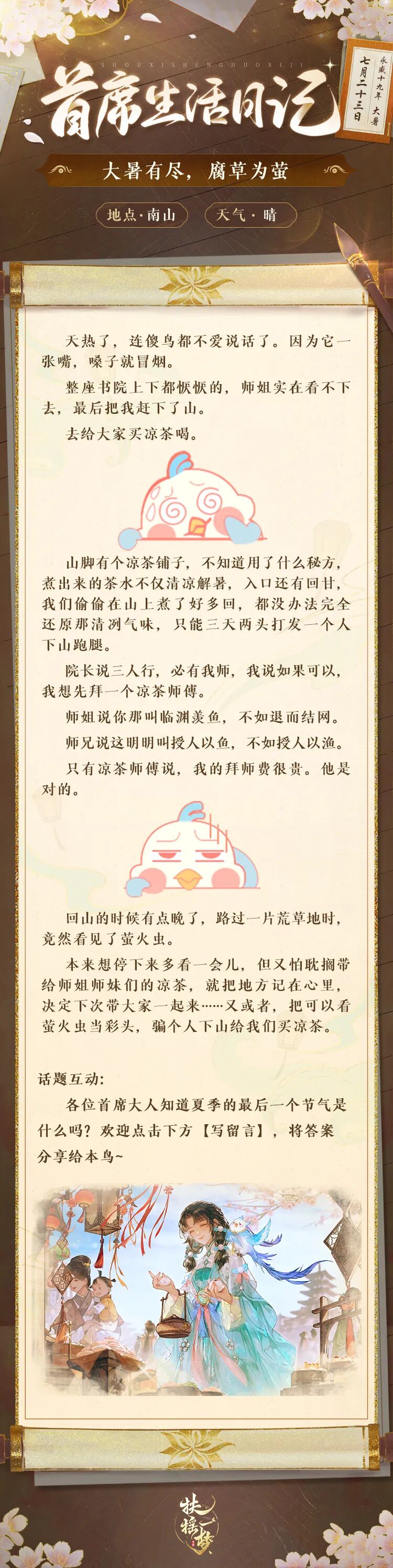 啾啾啾啾啾!天地翱翔间,尽收江湖事——本灵鸟来也!