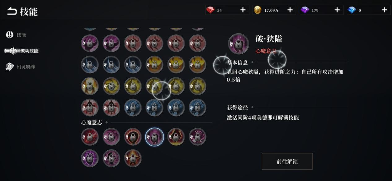 通过击败心魔获得美德来激活的职业被动技能,算是少有的收集难度较低的被动技能,收集技能的难点在于能否击败心魔成功转职,这个就只能看大家提升战力的速率了。