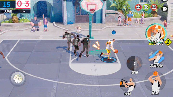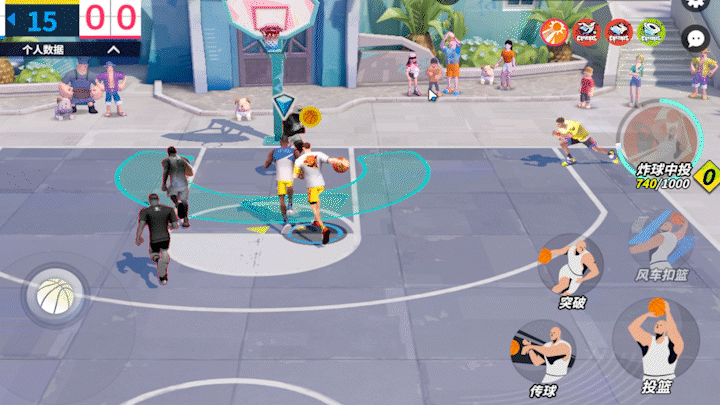 张阳的得分技能。持球进攻时,在突破过程中双手持球迅速后撤跳投,可以结合背后运球使用,增加该技能得分概率。