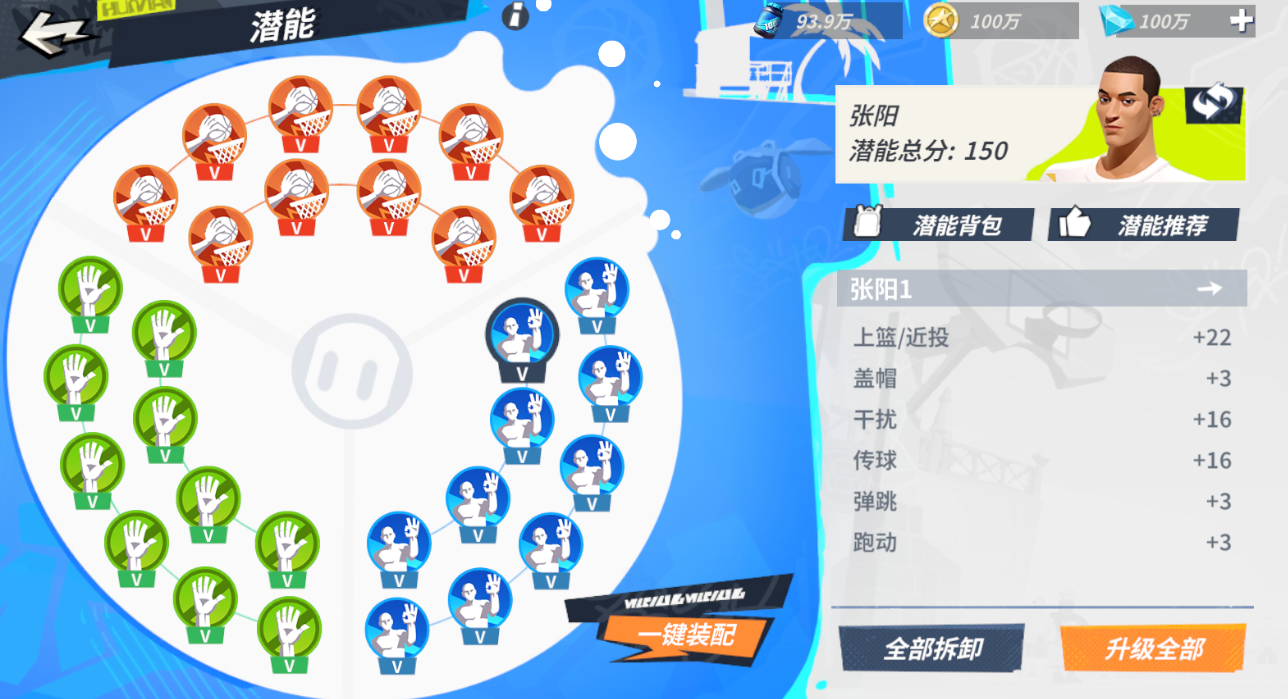 该潜能主要是提升张阳的上篮/近投能力,同时提高了组织进攻的传球能力以及防守端干扰对手得分的能力。