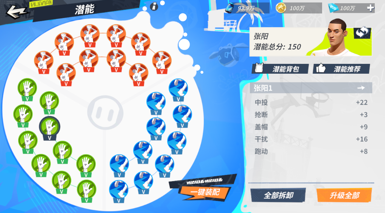该潜能主要是提升张阳的中投得分能力,同时强化了灵活进攻的跑动能力以及防守端的干扰能力。