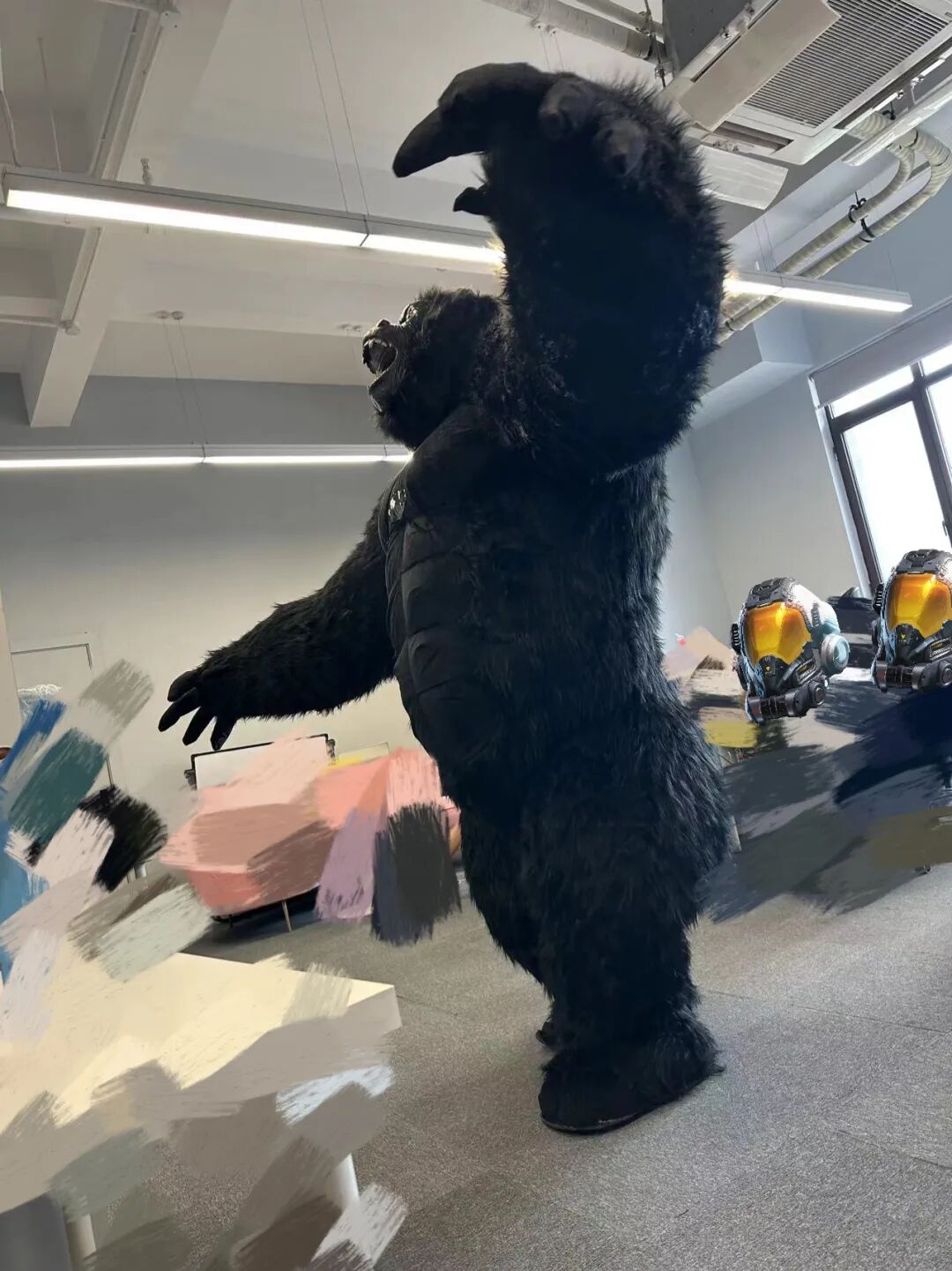 当然,大猩猩(未来版)作为珍稀保护动物,与它见面需要经历一定选拔,我们的伙伴妮雅也来到了现场,与美女coser妮雅互动问答,判定面试通过后,即可获得活动徽章,还会有电解质水给你充能~