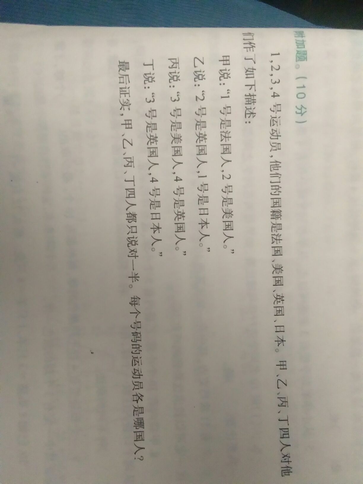谁知道1234分别是那国的人