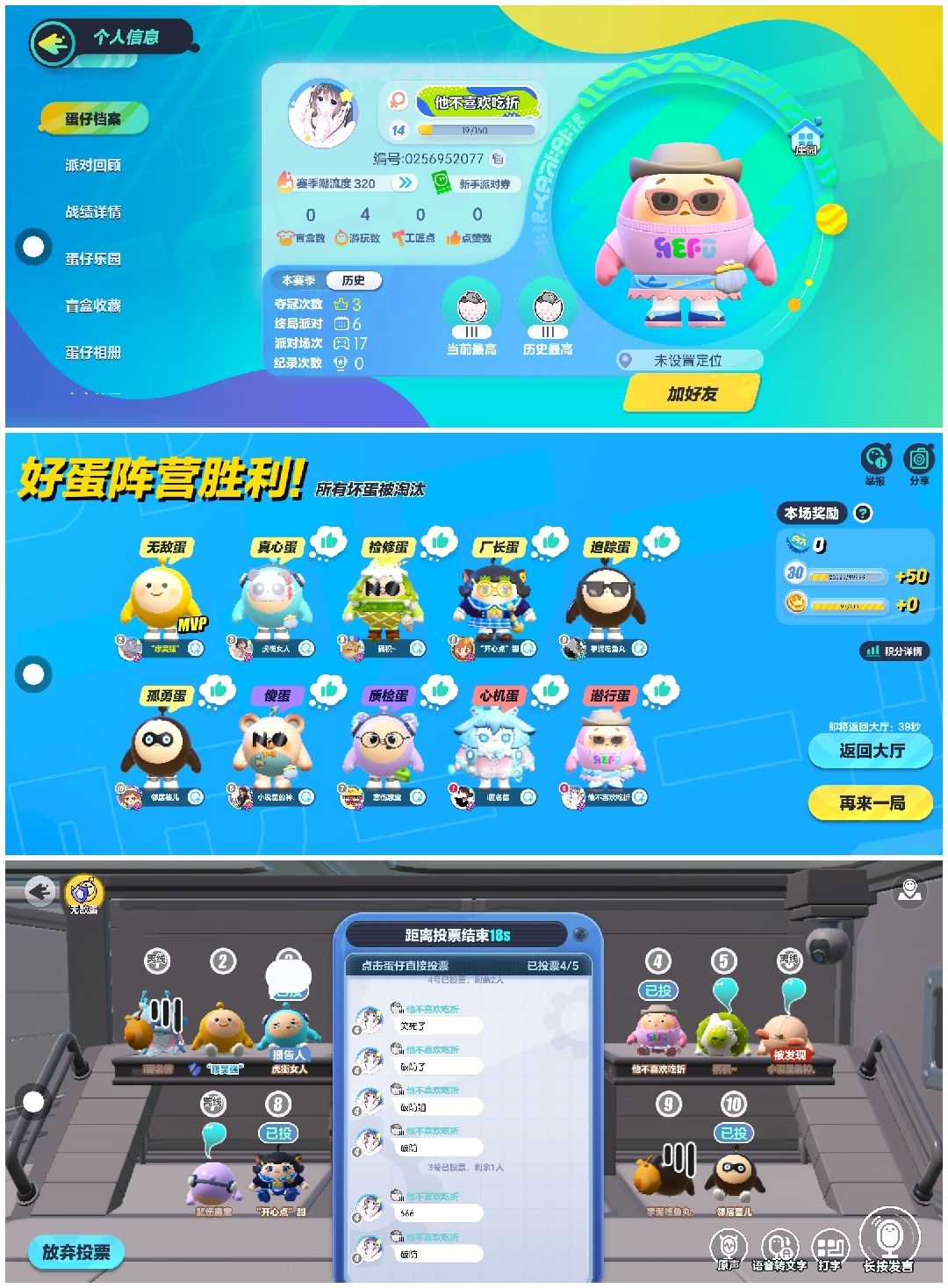 这个四号,是个坏蛋,然后这个三号是个真心蛋,验出了他的队友,然后三号就怀疑四号,然后四号和六号就说我们玩场外,真就无语住了,比较准一点就要被说玩场外,当时大厅二三八十都在,就四号不在,四号是潜行,我们都说是他了,他还要说我们是破防还是我们玩场外,避雷