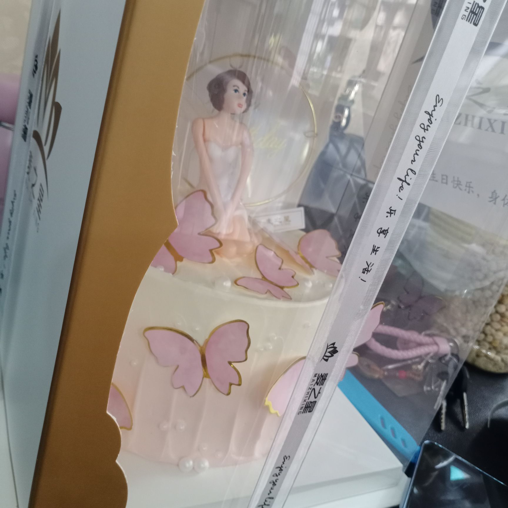 啊,美丽的蛋糕。里面的蝴蝶真美丽