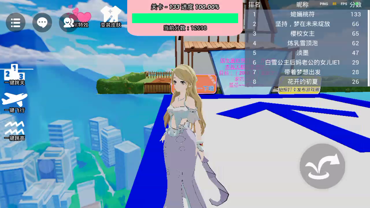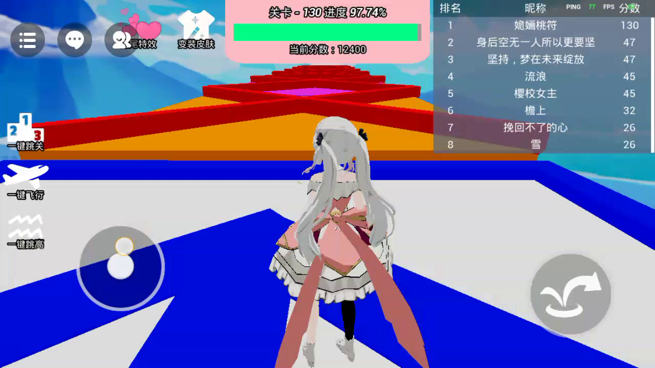 到终点啦!\^O^/ 前面还挺简单,后面就开始变难了,方块之间的距离不完全一样,不是很好走😜