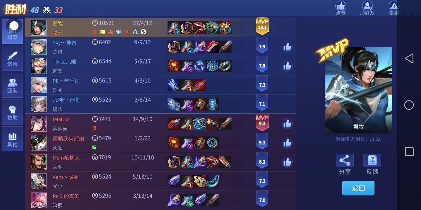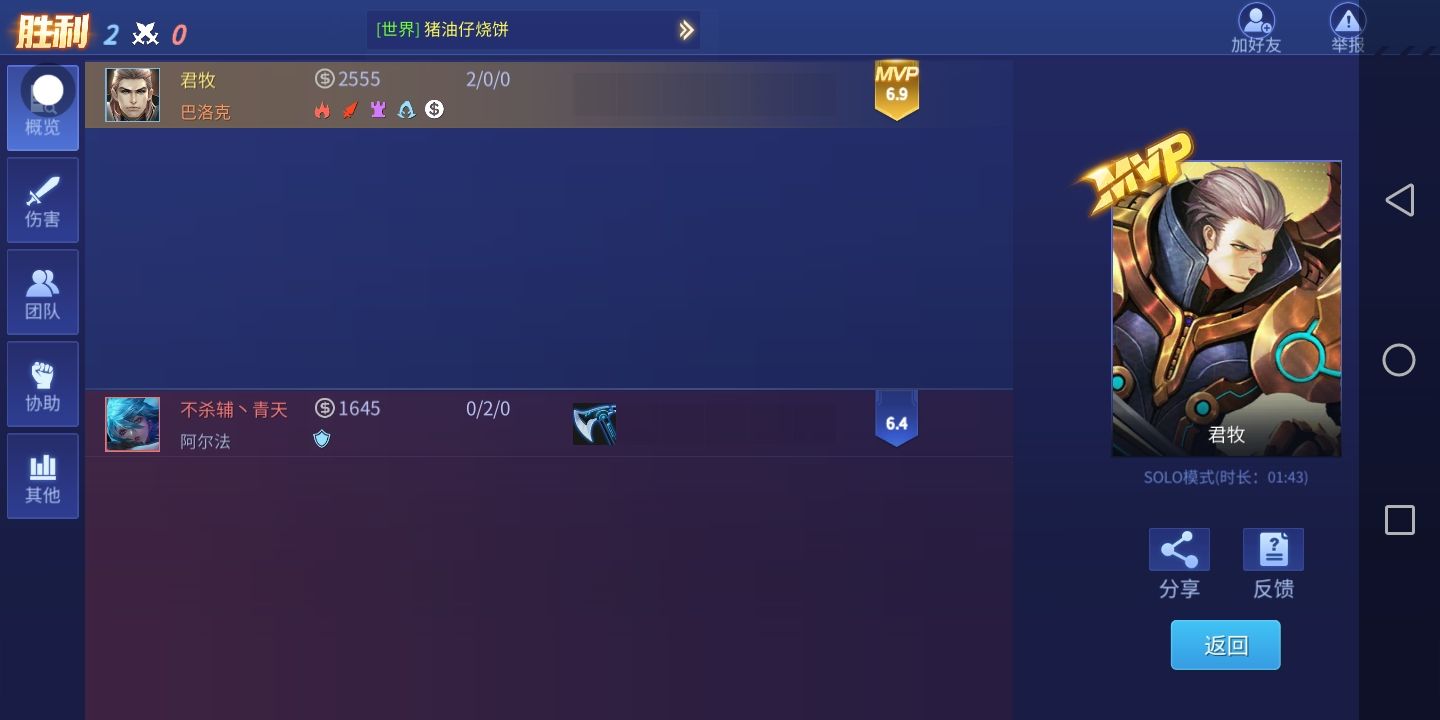 嘿嘿,才2杀,有点菜。有把13杀MvP。
