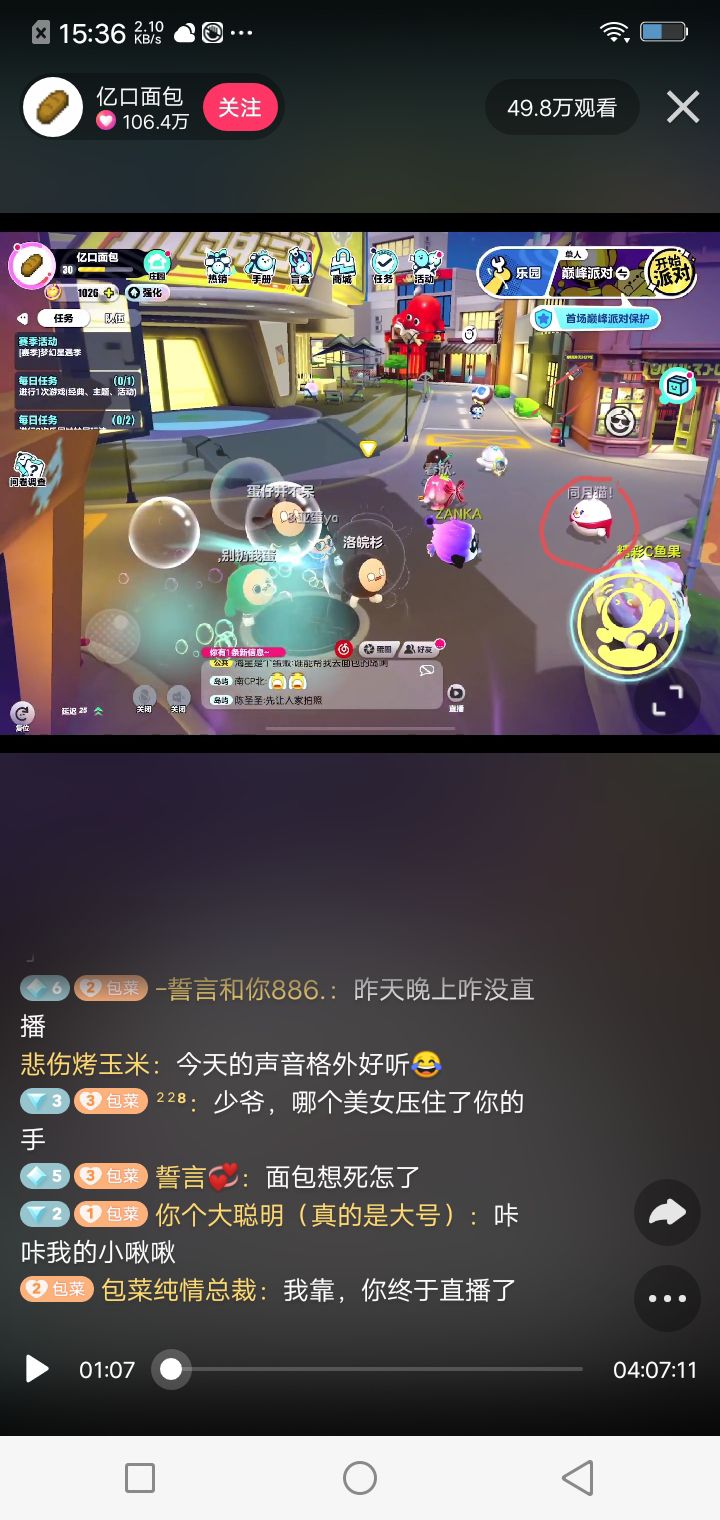 哈哈哈我在面包直播间里出现啦红圈里的蛋是我如果有人想在蛋仔里加好友的话有时候我会同意的哦!