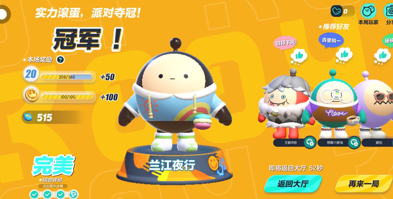 好开心呀!今天一共夺冠了3次。 变成鹅蛋啦!
