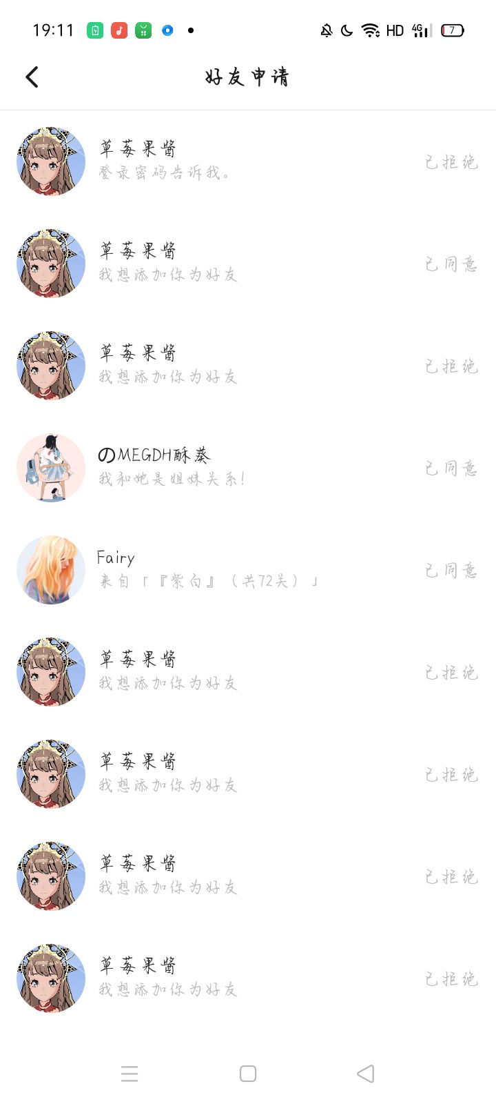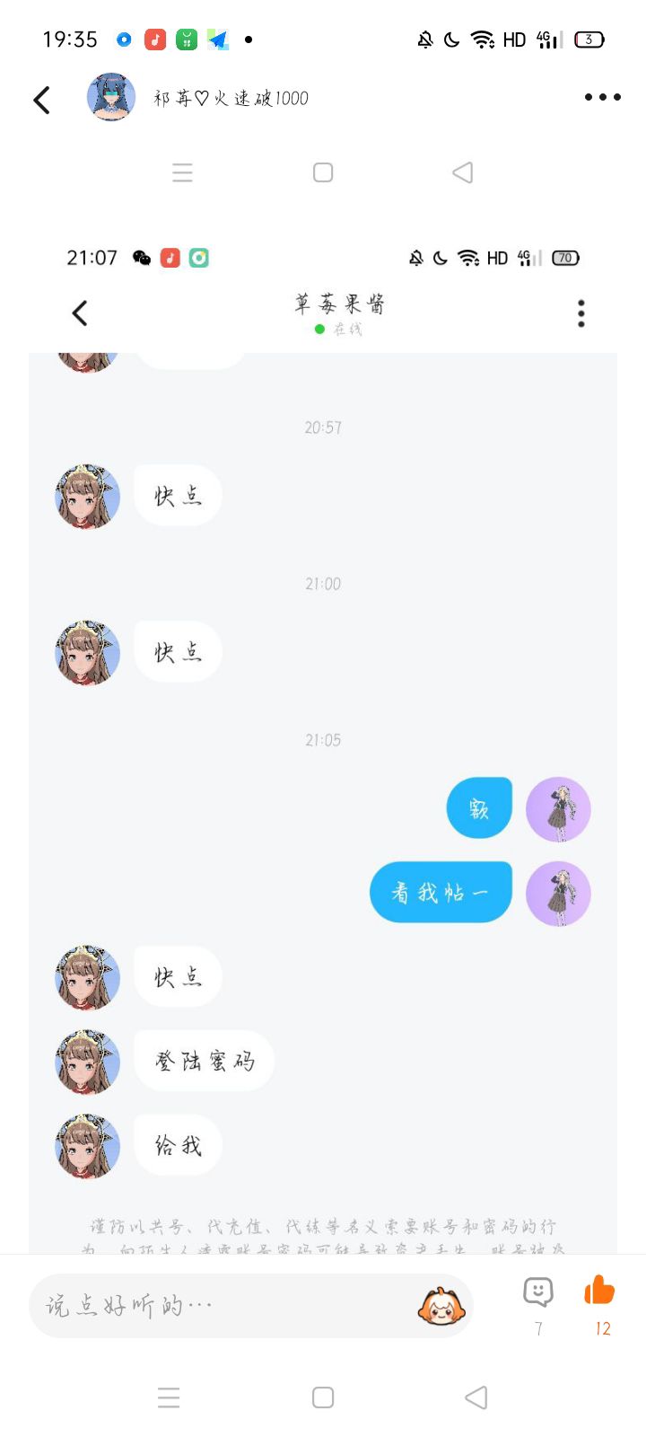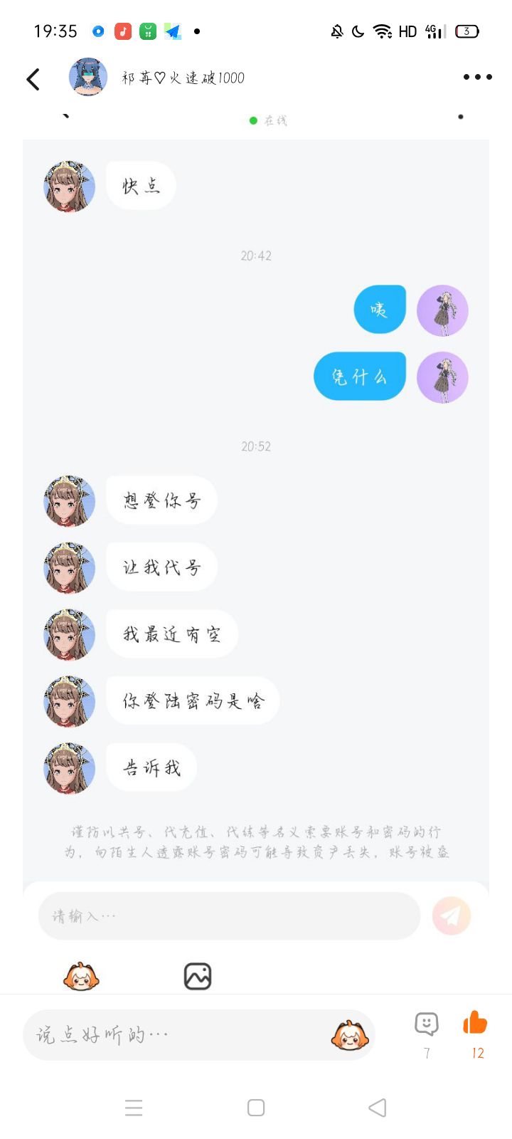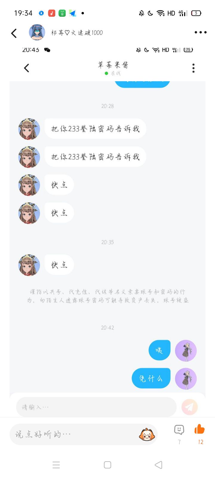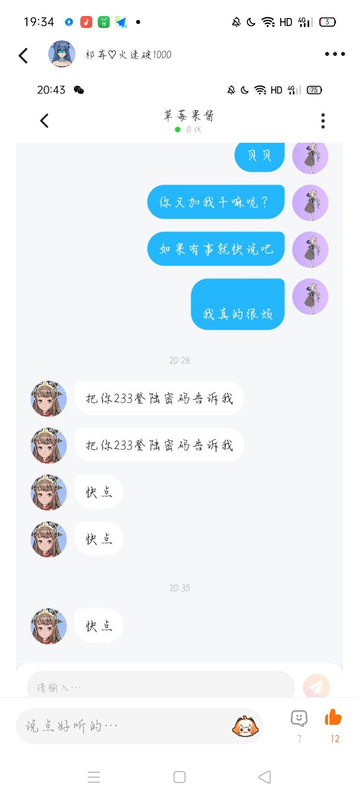 拒绝她添加好友就一直申请,加上了就一直管人要号的密码
