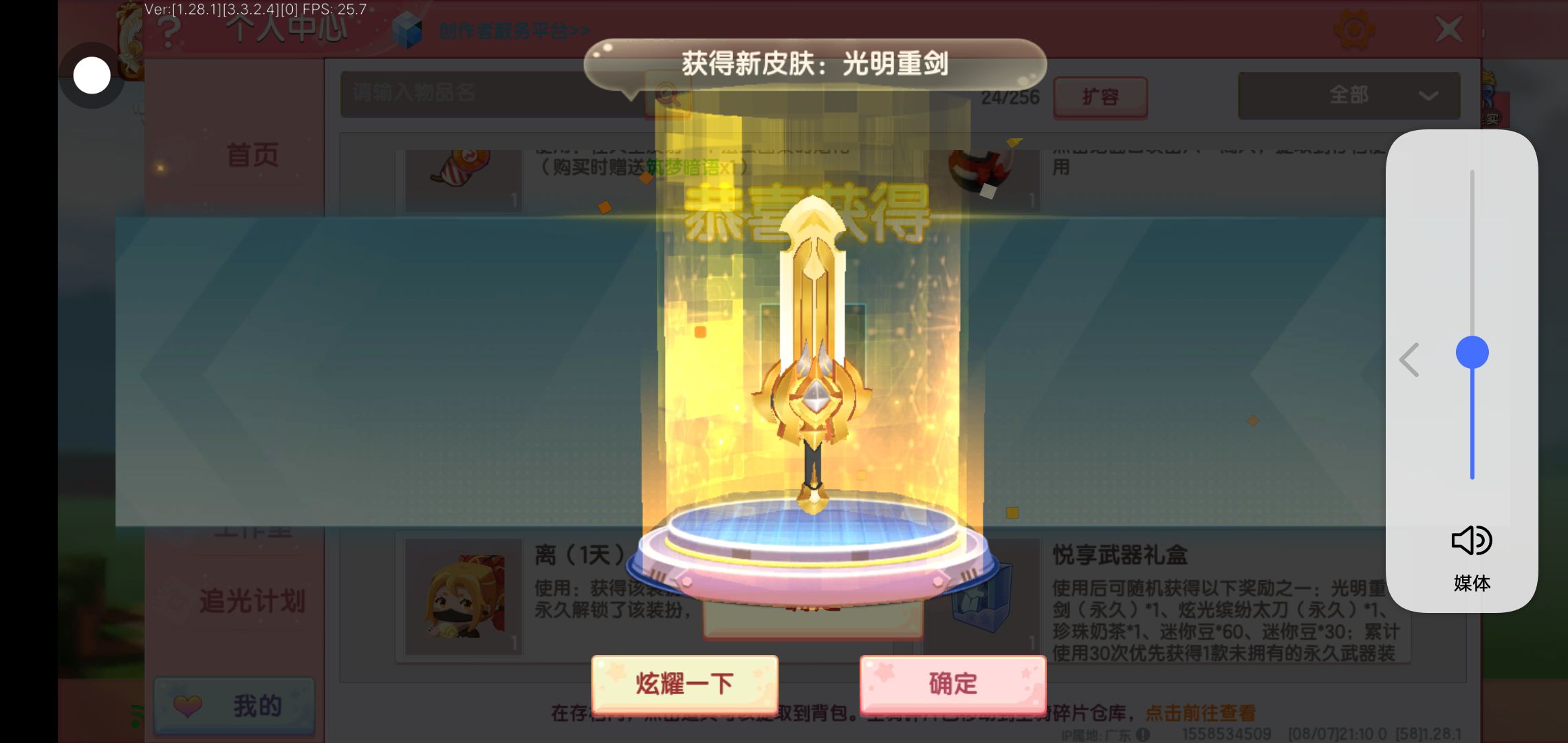 获得新皮肤:光明重剑