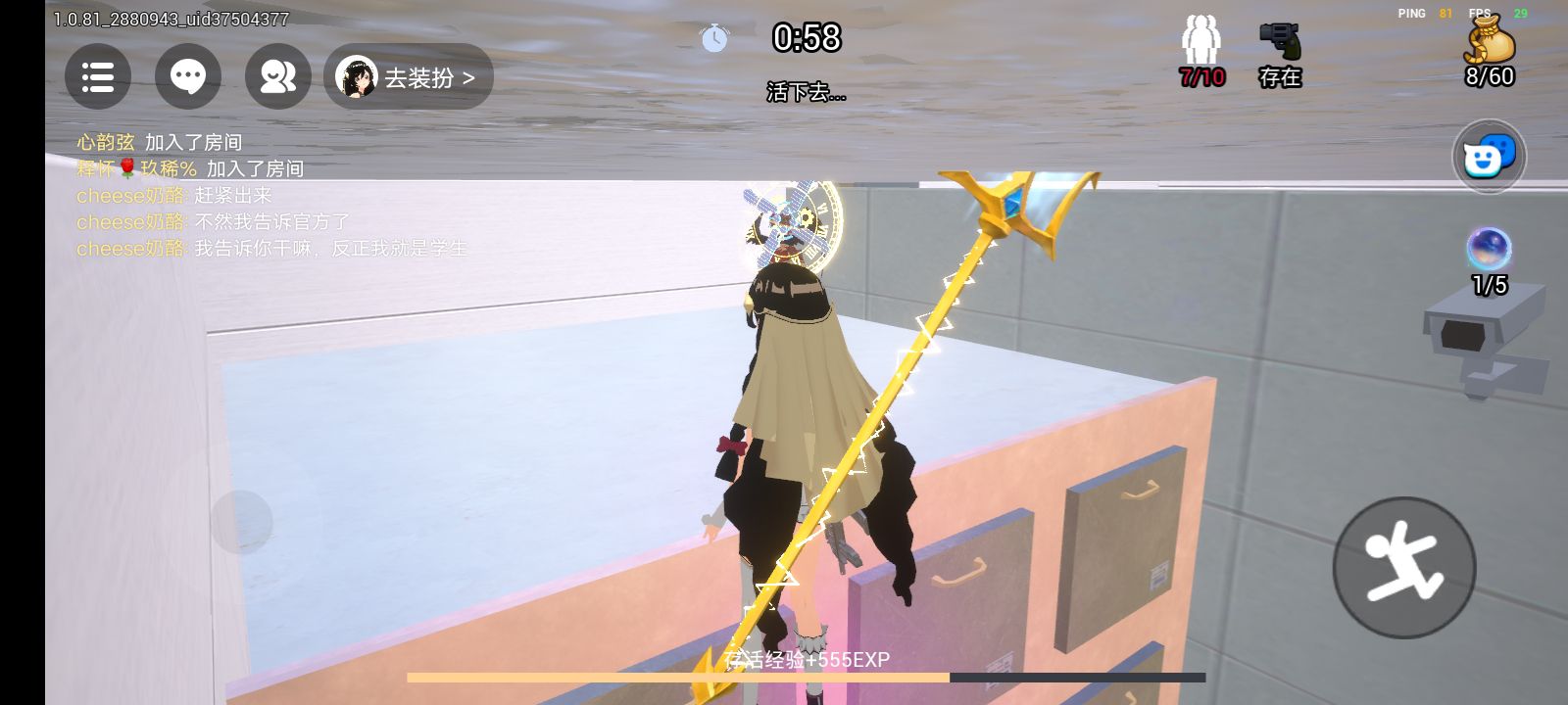 你看这个人躲进一个小小的缝,里面杀手根本杀不到所以你要把这个小变得大
