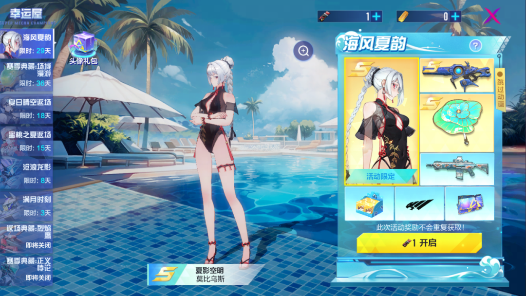 莫比乌斯S级泳装外观“夏影空明”,电浆飞弹S级外观“海洋之心”,飞行器S级外观“荷塘映像”全新上线!