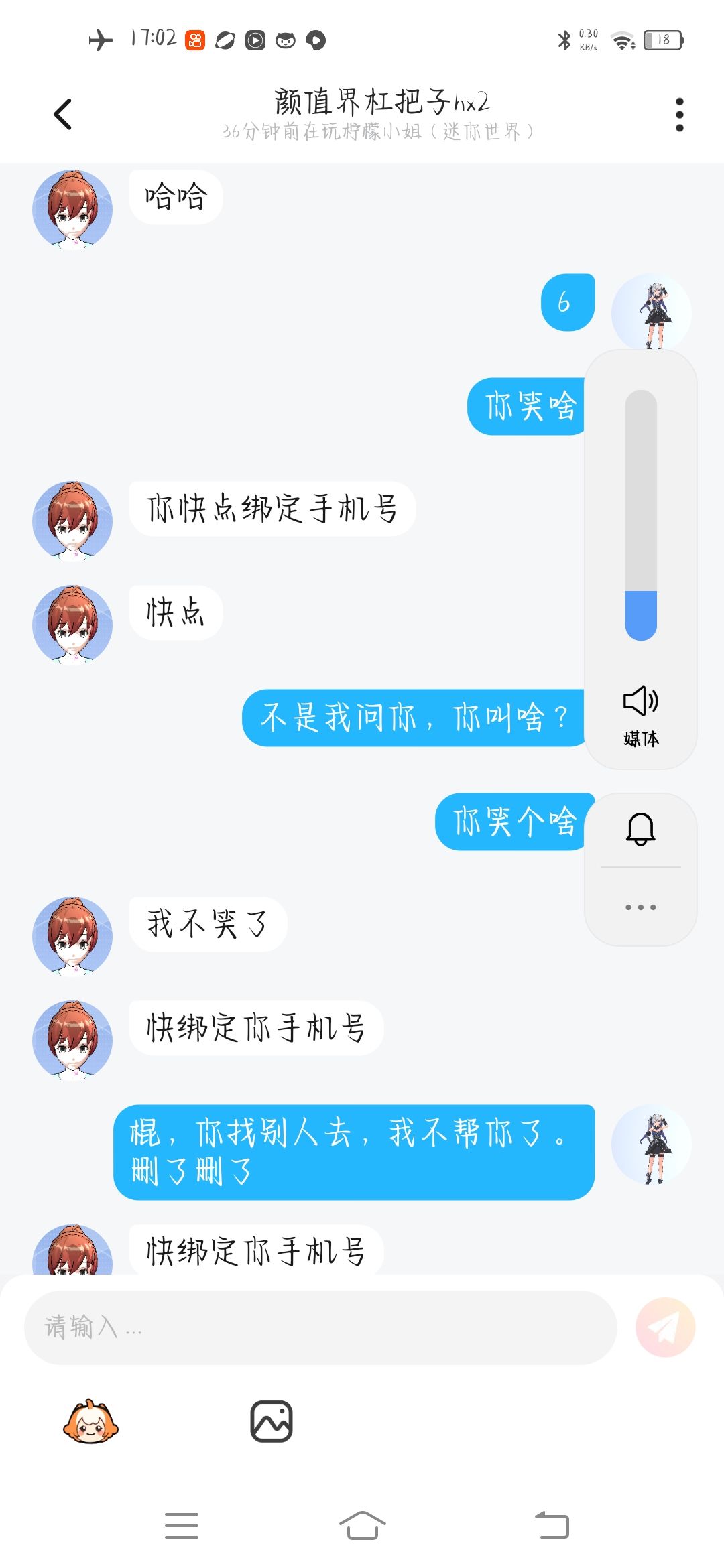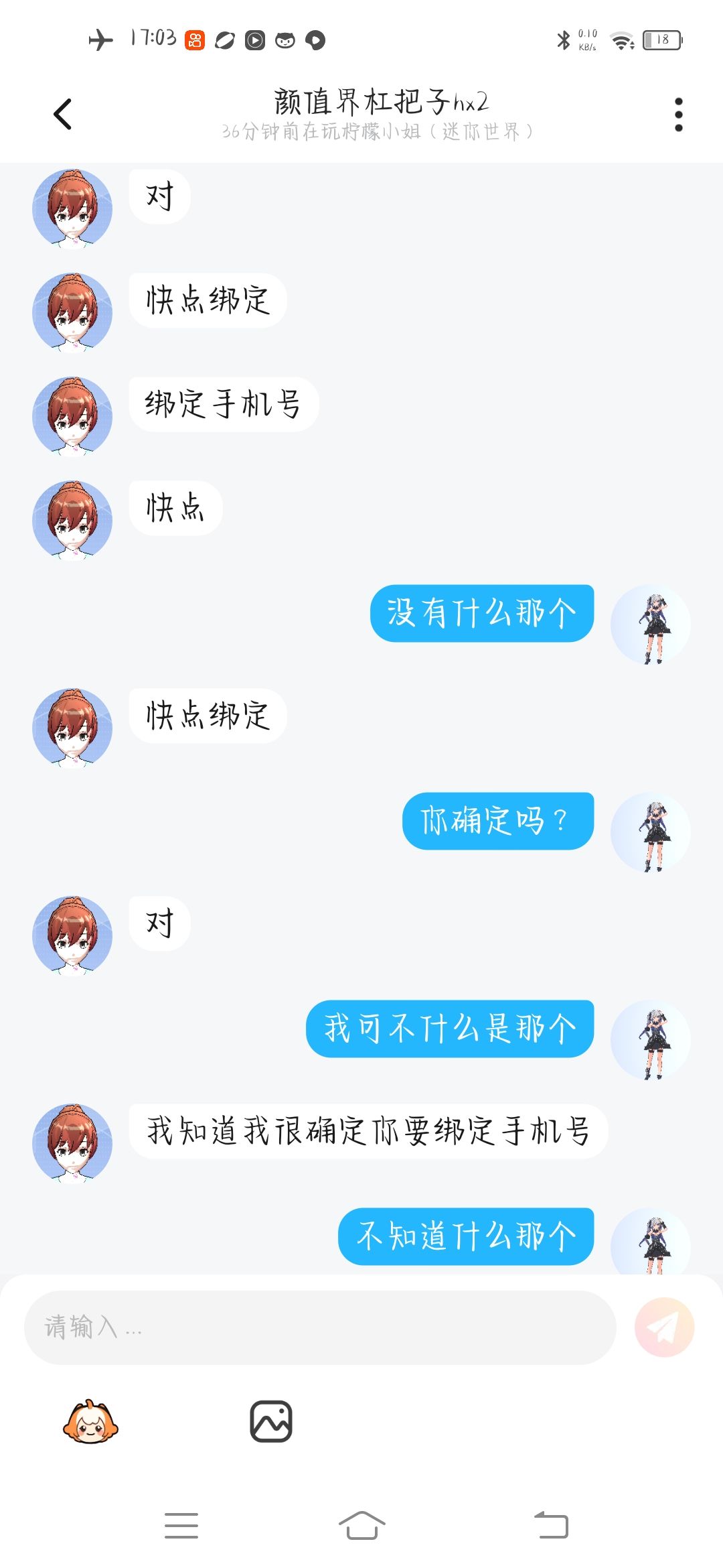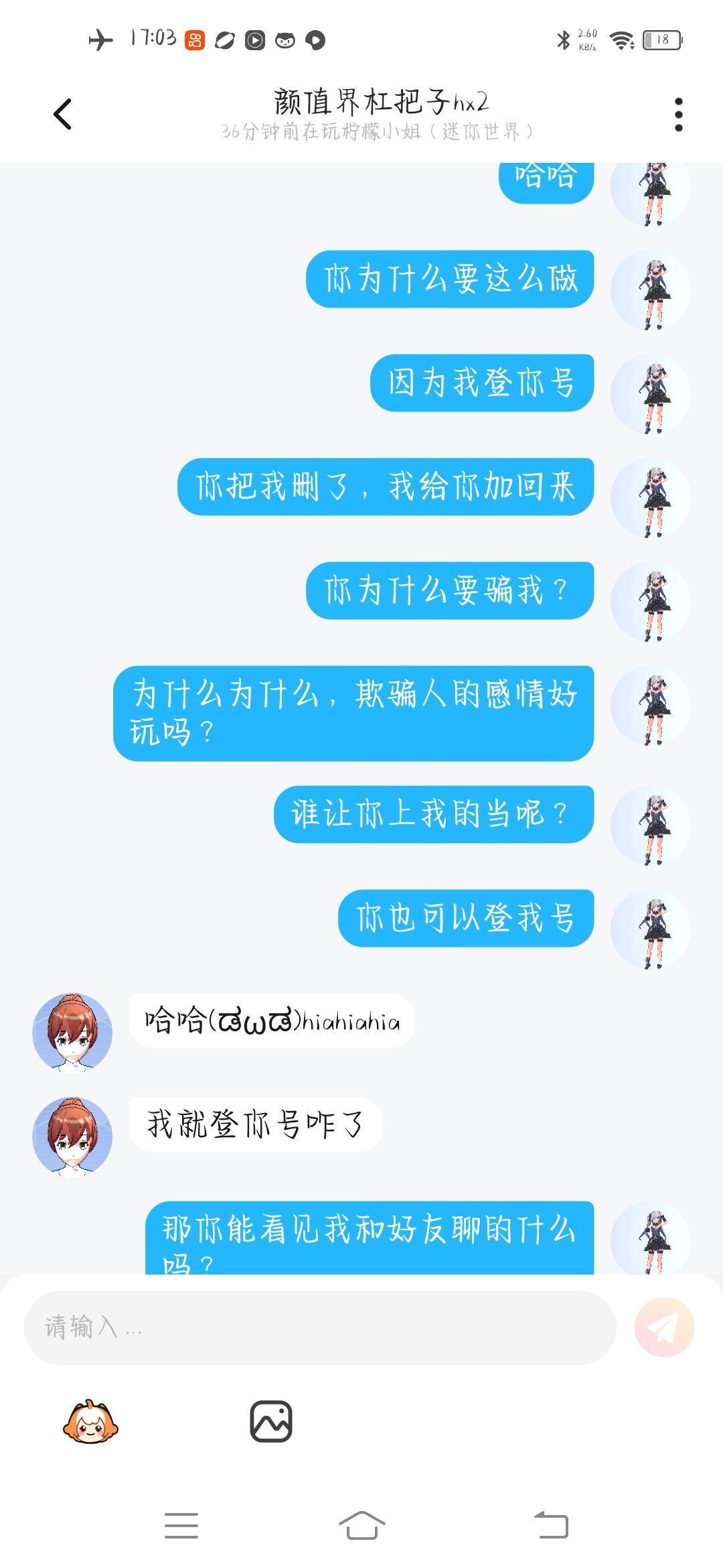 这个人盗我的号,但是我的大号还能说话,我只是绑定密码没绑定手机号,暂时他完全登不了我的号。而且他还登了别人的号。他找我好友聊天的时候我好友问他,你真的会一个星期把他的号还回来,他说永远不会的。这可是好友跟我说的千真万确。