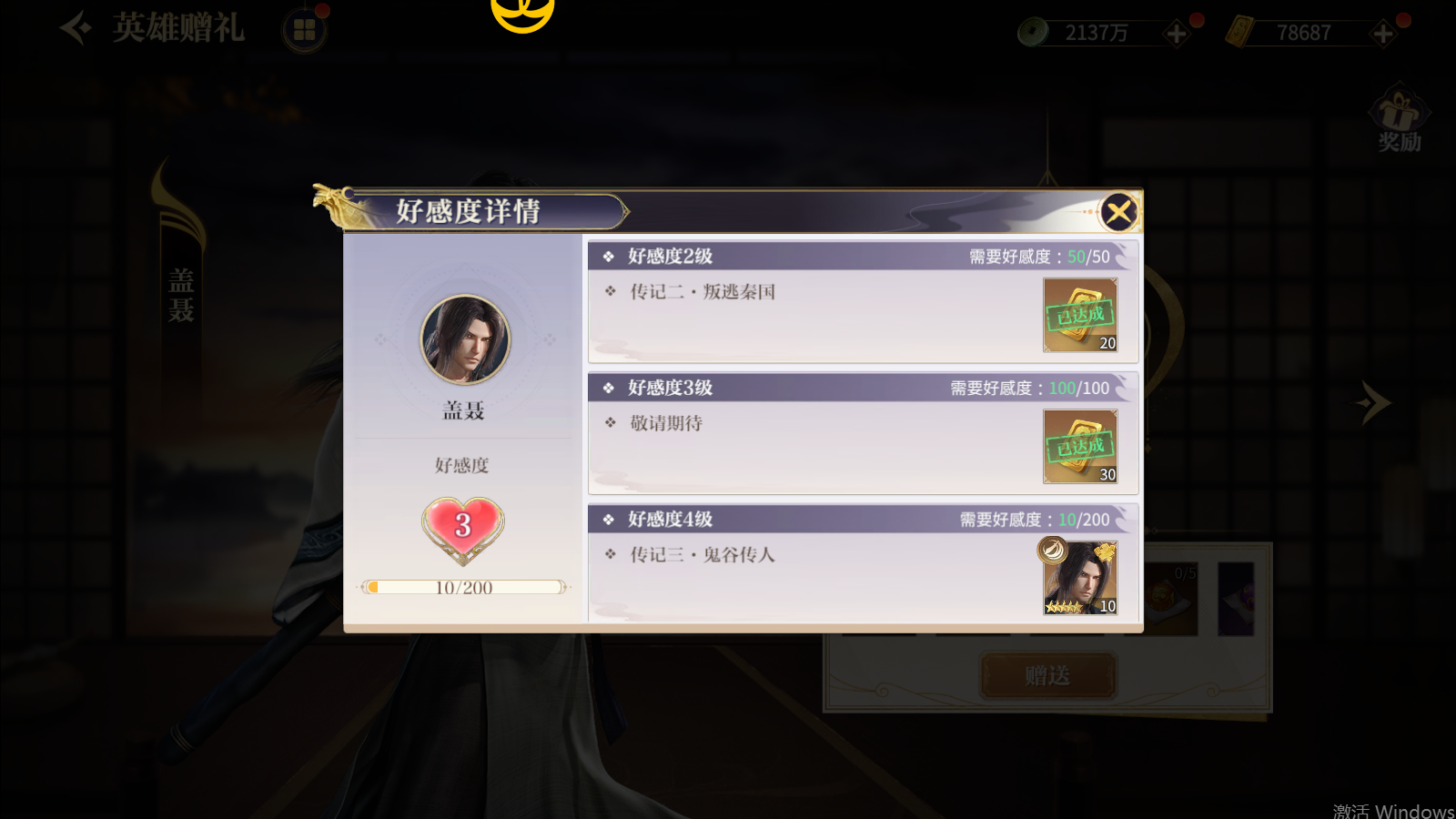 当英雄的好感度达到一定等级时,可获得金镒和英雄本体碎片奖励,单个英雄的好感度达到