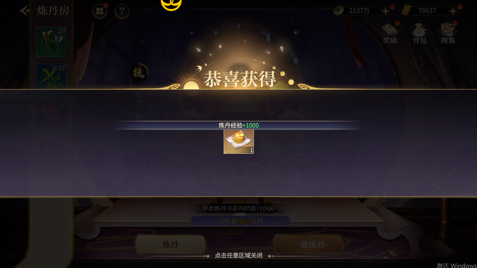 4. 炼丹可获得经验,累计经验可升级称号并解锁奖励