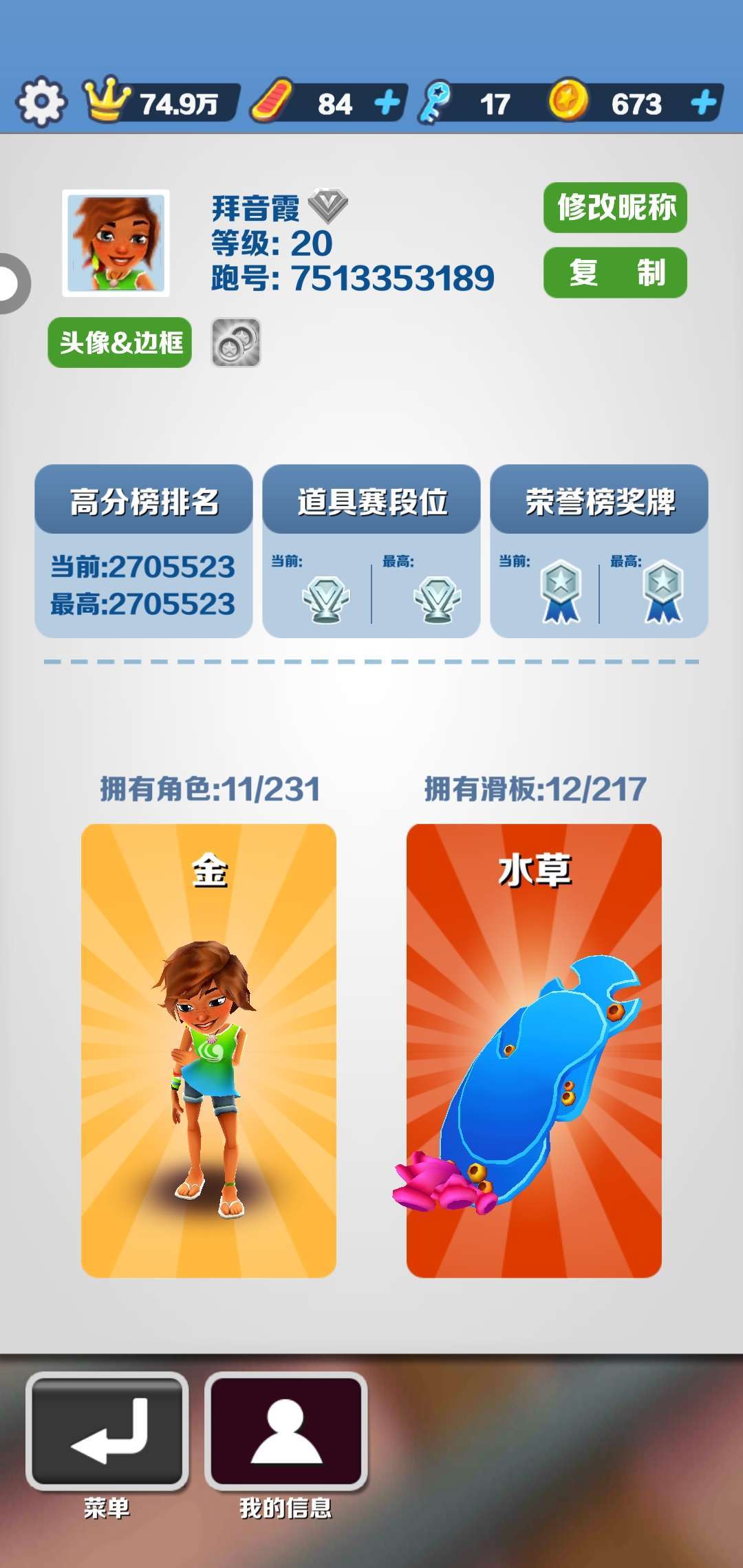 我的号就是这个了,之前用金币把金币用没了😭