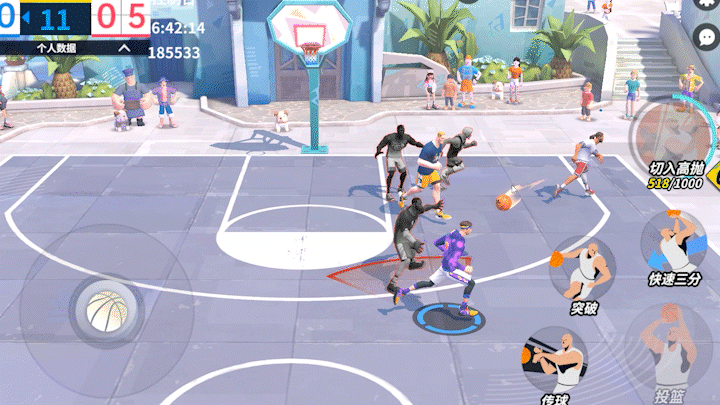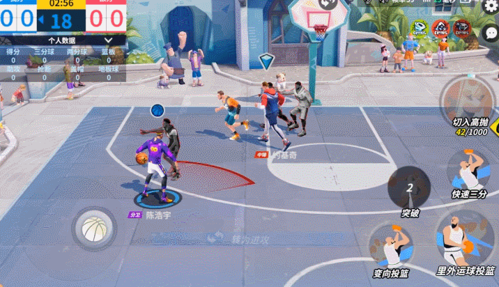 陈浩宇的爆发技,球员持球时运球切入,然后单手快速抛投进篮筐,运球切入时有概率晃倒对方球员。