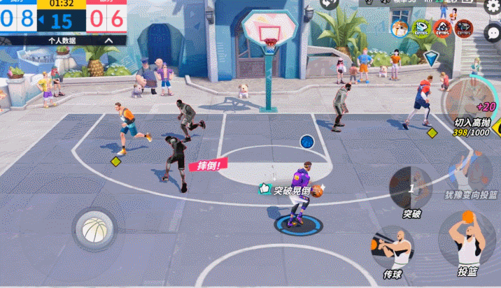 持球进攻突破时,球员会变向急停投篮出手,变向运球时有概率晃倒对方球员。