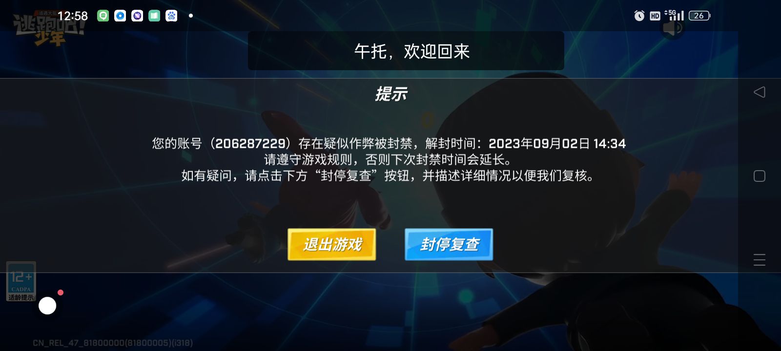 官方你赶紧给我解封,填了那个也没用,赶紧给我解封,我辛辛苦苦肝的号就这样没了。希望官方能看到。