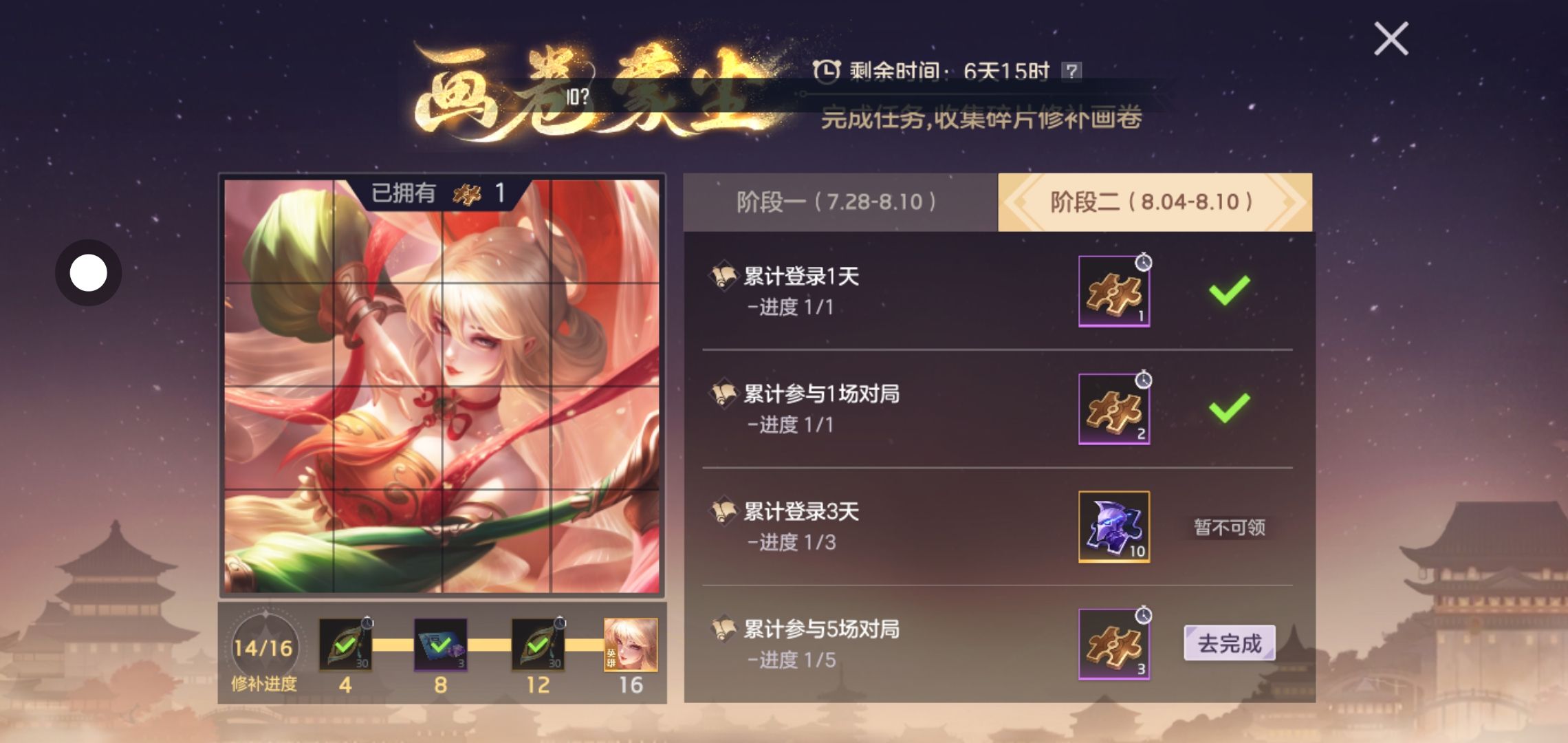 我刚登录的时候就领取了碎片,并点亮了,之后就打了一把匹配,结果就出现了全服闪退,我这个右边的碎片重置了,所以就重新领取了,但不知道为什么,拼图表面上显示的是已经点亮了,可进度却把我刚点亮的重置了,现在就成这种情况了。
