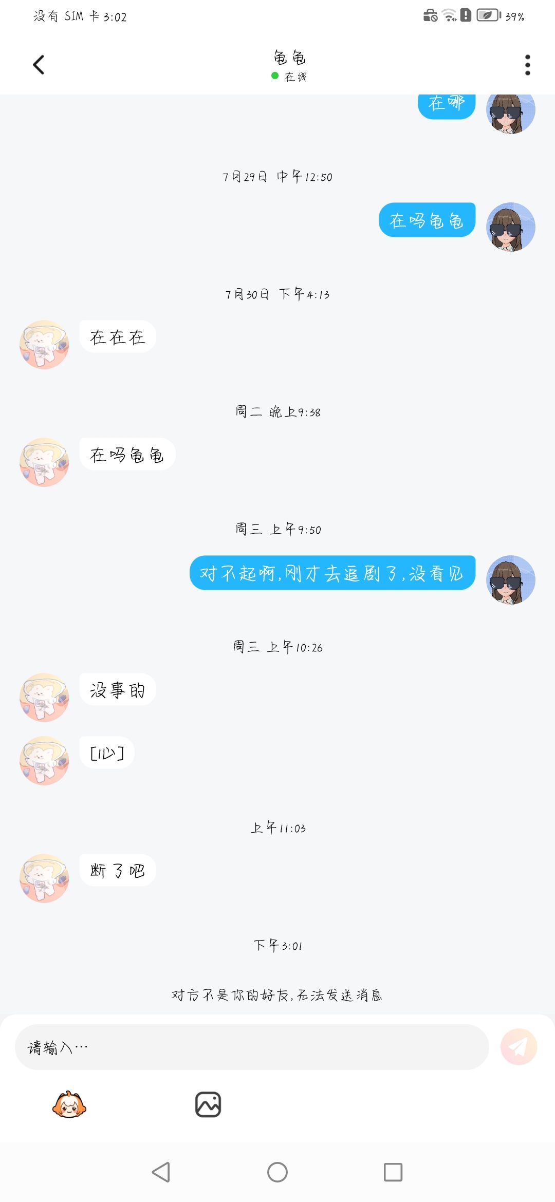 千万不要和它处龟米,不回消息几天后才回,我本来在追猫之著看不见消息今天就断.以前我都不生气
