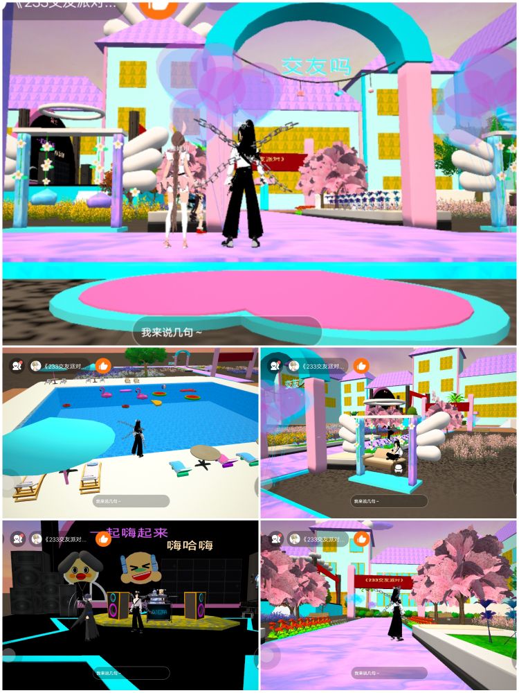 推荐理由:超大的交友会厅,有足够的空间,进行交友,场面非常的庞大,颜色搭配也好,DJ舞台,游泳池,已经在造图无所不在!当然还有很难建的秋千,交到好友后,可以一起打卡拍照!