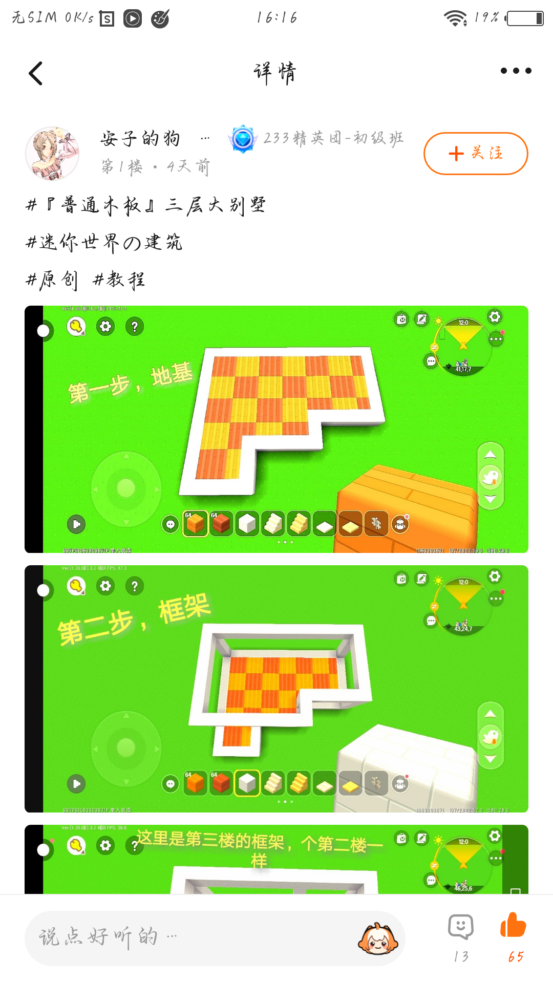 建筑风格偏大众,颜色搭配也很得体,教程简单易学看起来清新有形,但是如果能在教程上加上长、宽、高分别是多少就好啦!