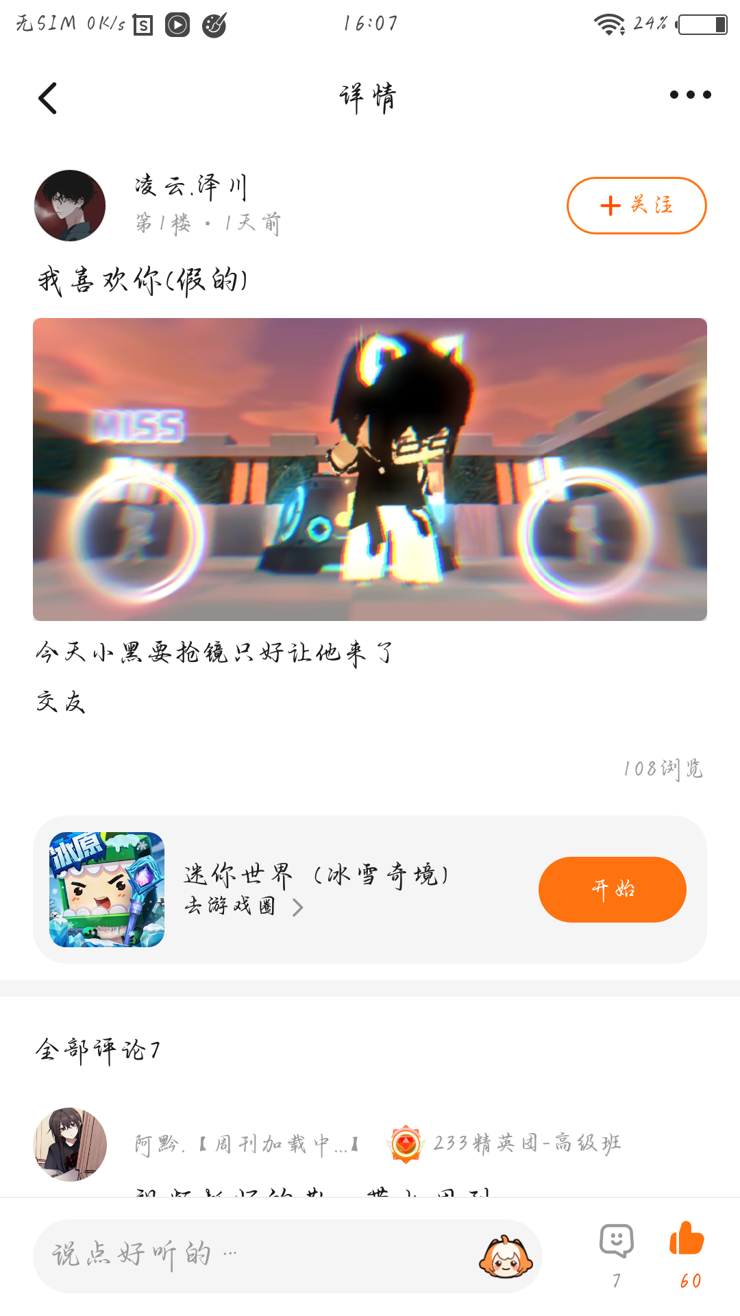 在此和大家聊一个小话题/迷你圈最近为什么没有活动?:这个话题也是大家问阿黔最多的问题啦,难道大家没有注意到在迷你游戏圈置顶栏里的那些活动咩(⁰▿⁰)当然,是不是不喜欢这种类型的活动呢?那就来试试自己举办活动呀,奖励自己提供即可噢,大家也不用一定看中奖励,感受活动中的乐趣也才是最好的,说不定你的活动帖子在官方看到后还会置顶呢!但是活动禁止涉黄🚫❌