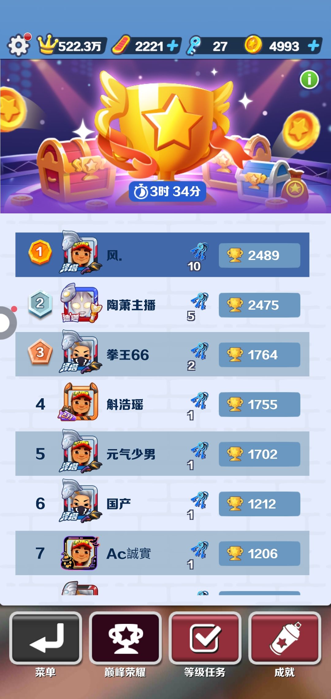 最后一名都有42个奖杯,我却只有2545个,还不到他的1000倍,怎么办啊😞