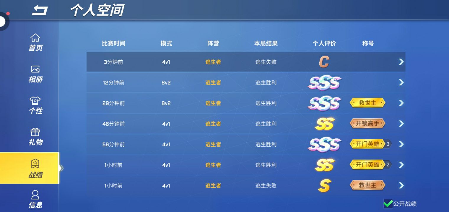 白日梦能不能修一下bug,我开个4V1,8个逃生,两个追捕我刚进去你直接给我退出来。出来后我看了对面