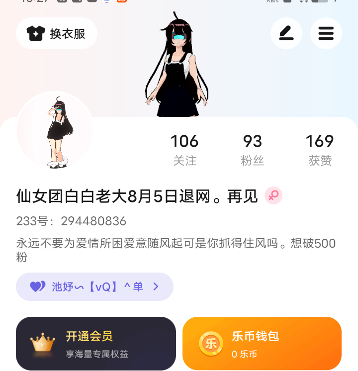 跟粉丝们说一下要退网了。再见。就是今天退网。但是我也不会删233乐园。有时候经常不会上线