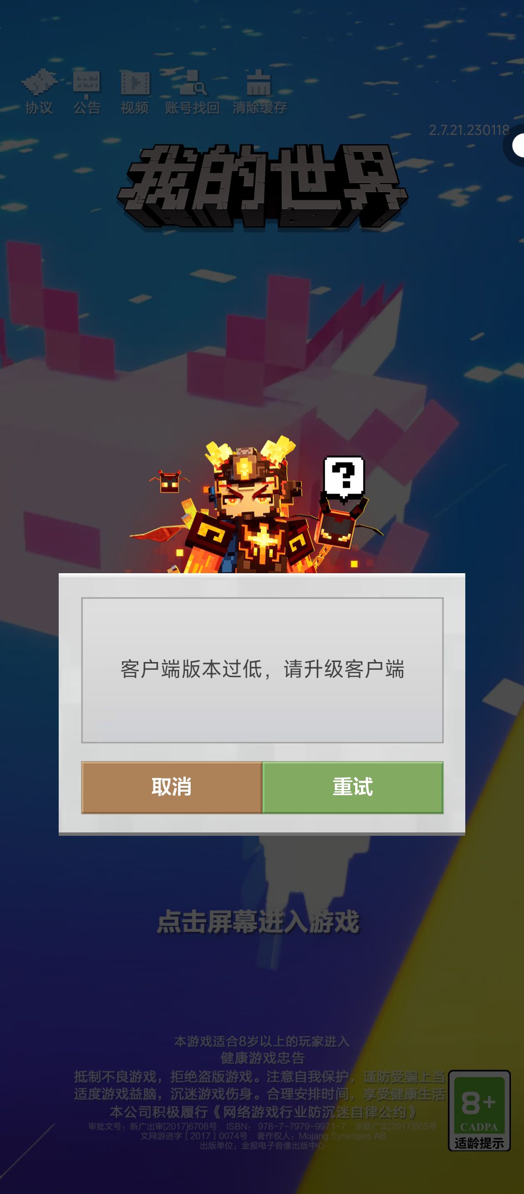 明明更新完了,为什么进不去?