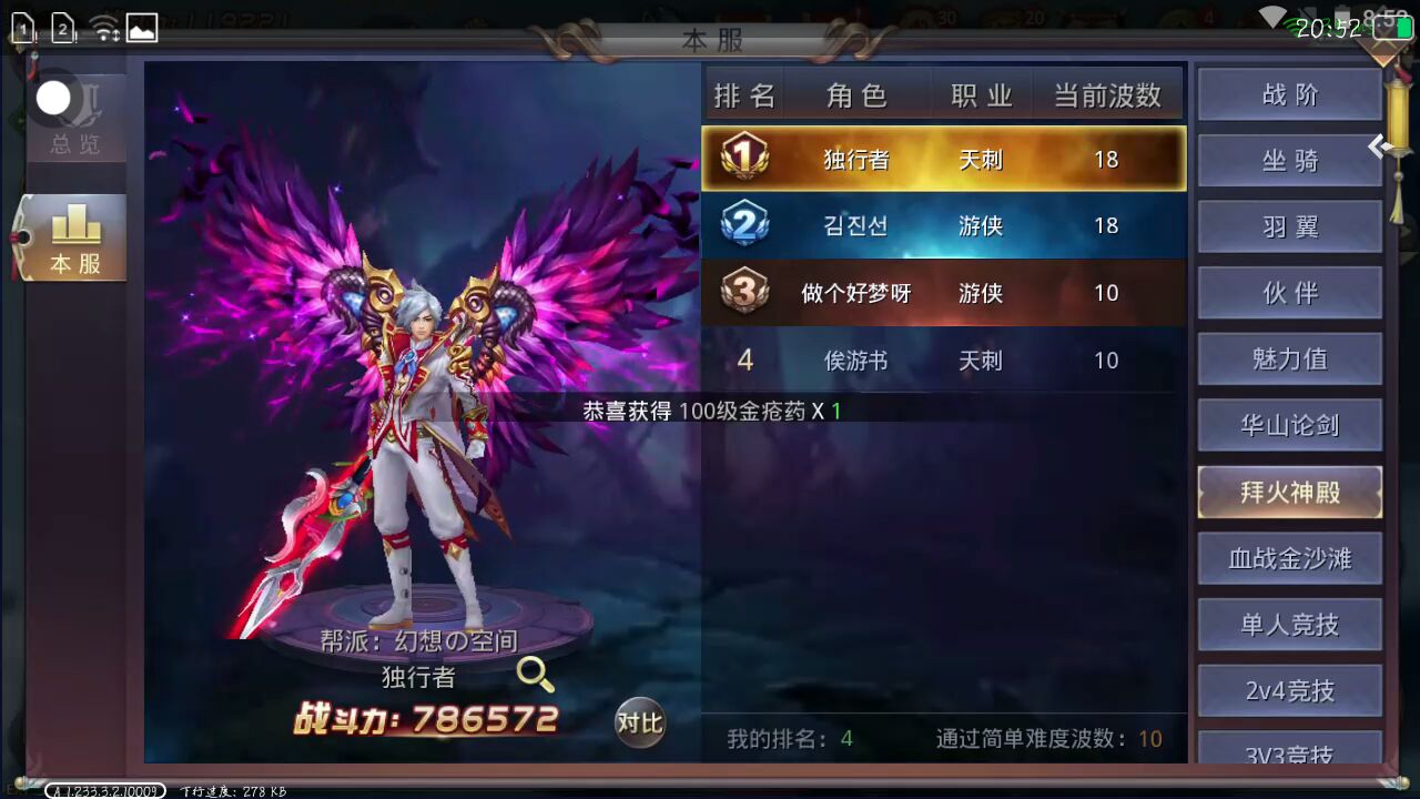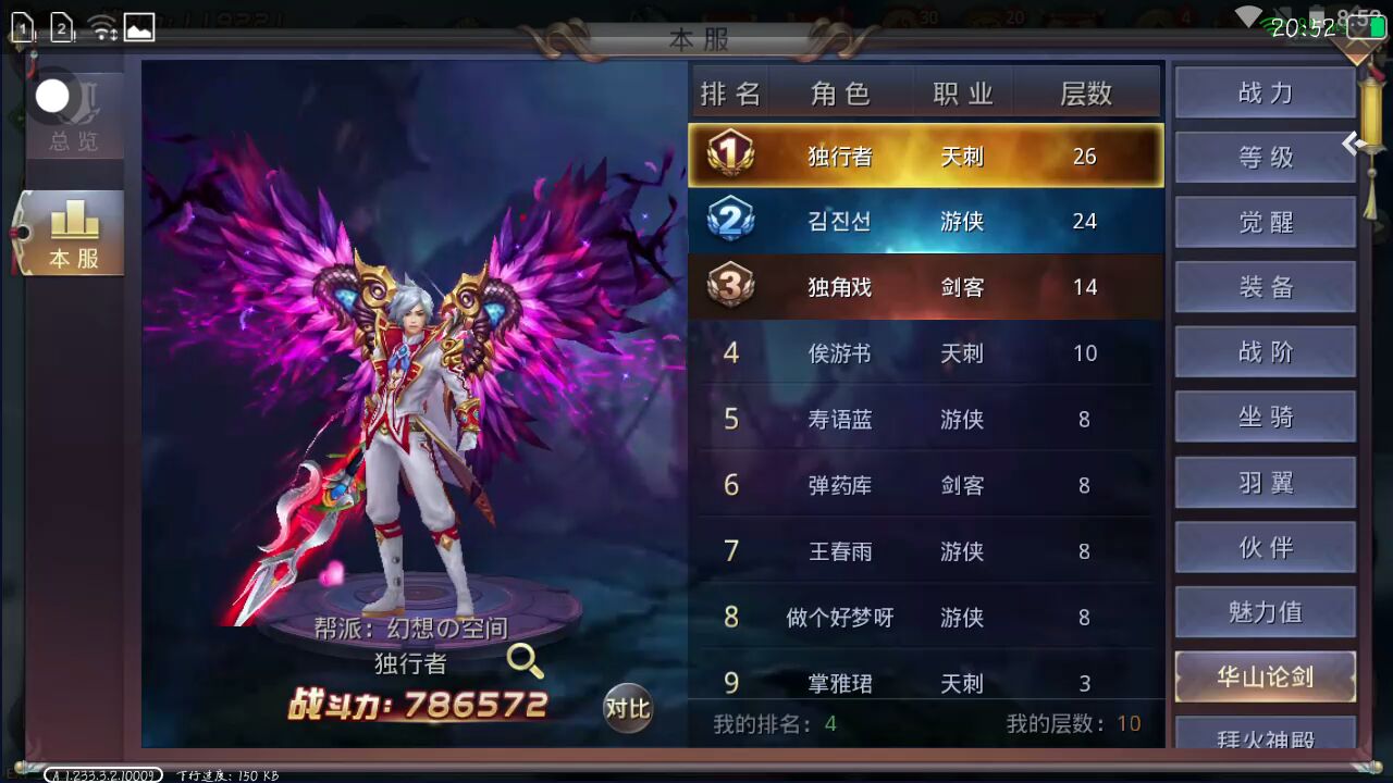 老铁们,我在昆仑虚游戏,排行榜全服第四(还有一部分)
