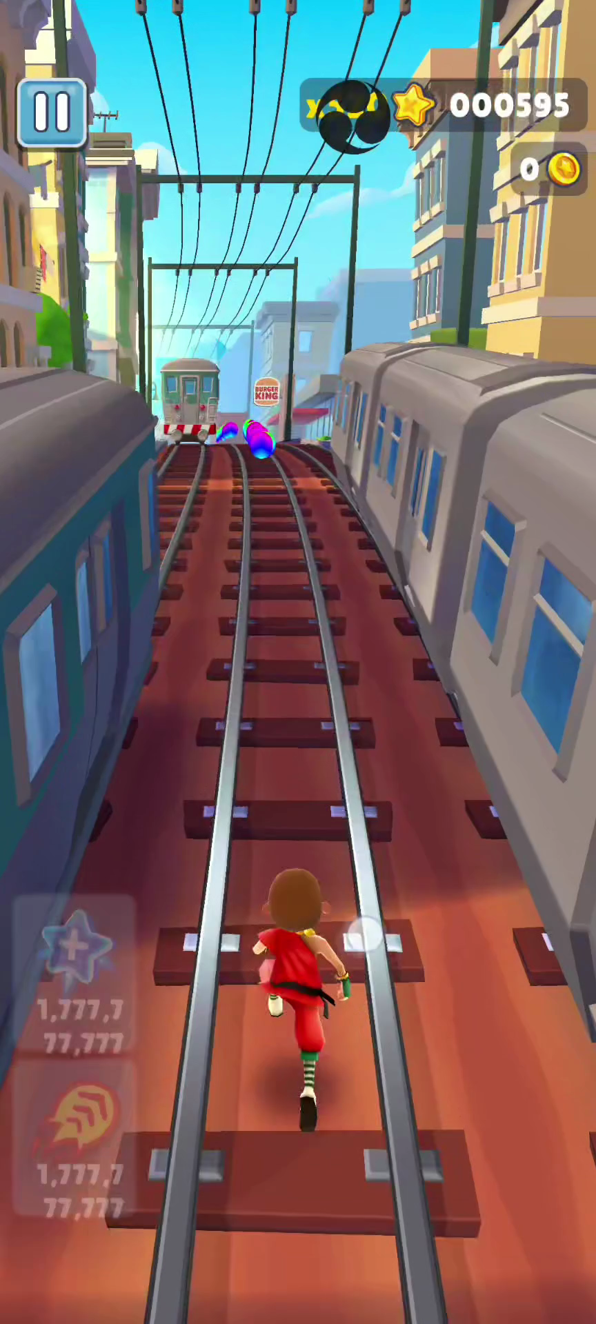 玩家分享《地铁跑酷》牛津版本的游戏画面,展示了在轨道间躲避障碍、收集金币的跑酷过程,玩家表示正在练习身法,希望能上游戏周刊。