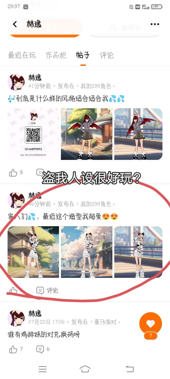 什么成分,都说了装扮禁仿禁盗,眼瞎吗? 盗旧人设就算了,连新人设也盗。我好不容易捏的,说盗就盗?