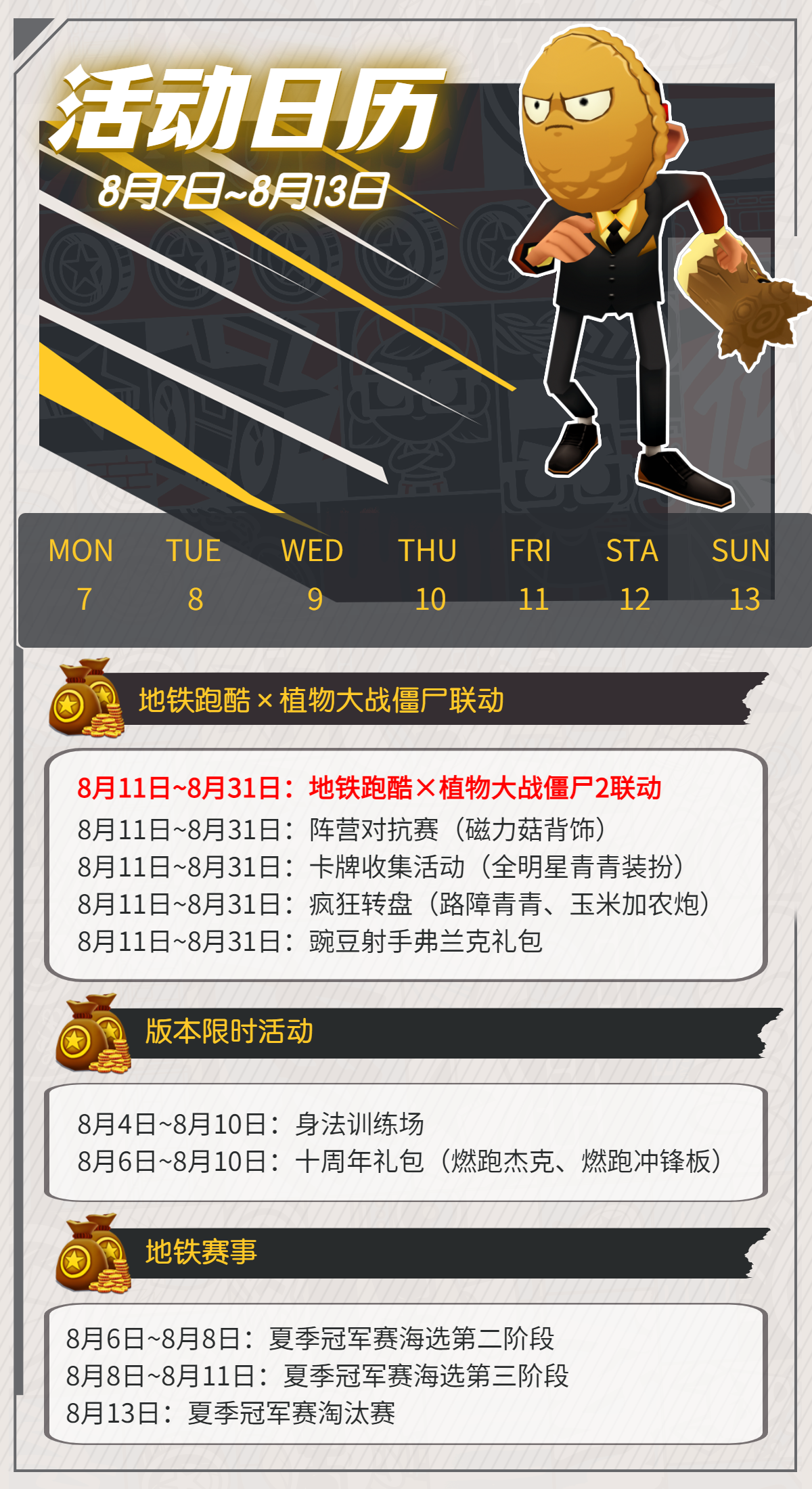 大家期待已久的《地铁跑酷》×《植物大战僵尸2》本周上线!!