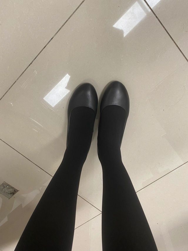 尝试一下穿妈妈的鞋子,有点挤脚