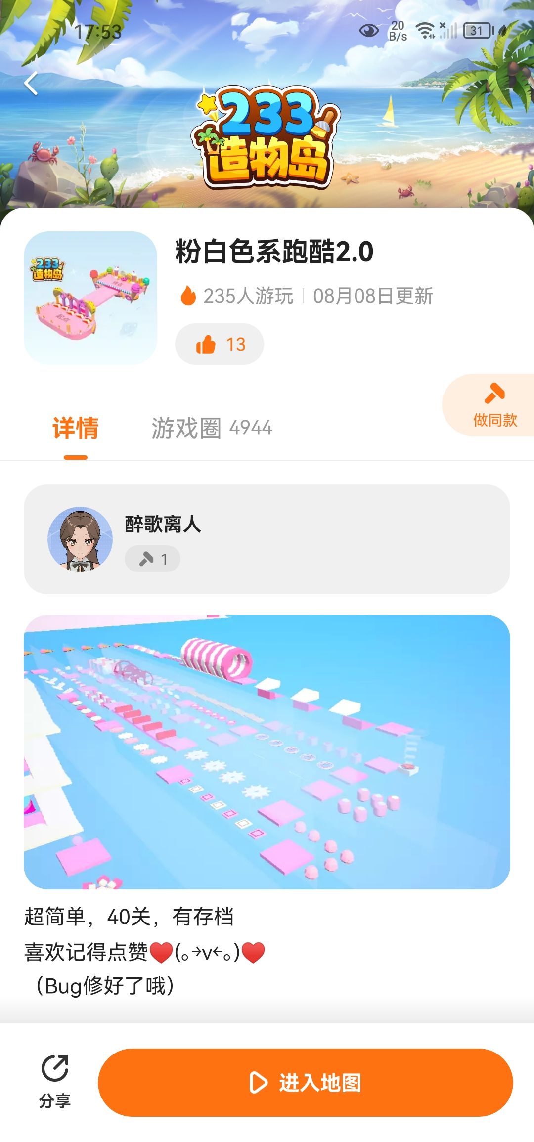 我新做的跑酷,可以来玩嘛☺️ 我也是第一次做 不喜勿喷😭😭
