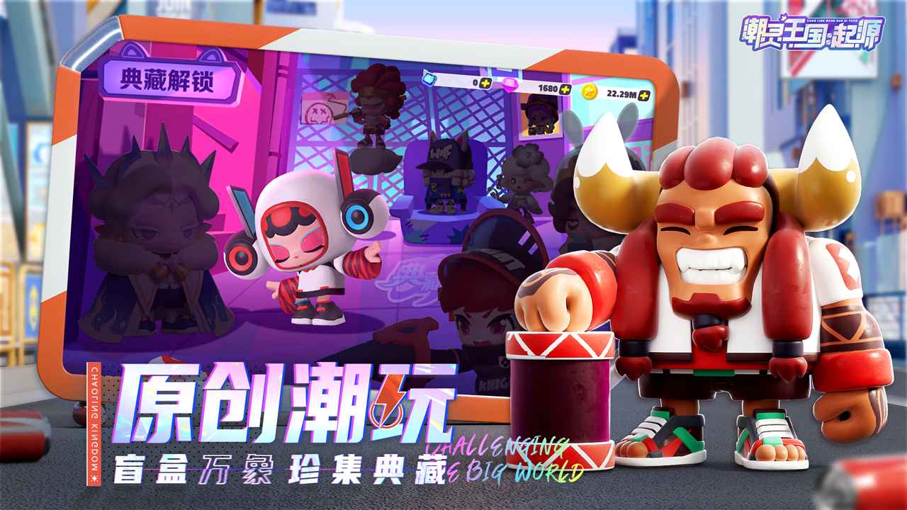 游戏以潮玩手办为题材,盲盒王国为世界观背景,在这里你将开启神秘的扭蛋机,邂逅多种风格鲜明身怀绝技的潮灵伙伴,你们将缔结缘分携手重建旧日家园,用精美的装饰DIY属于你的满分王国。来吧!踏上精彩纷呈的探索之旅,一路经历数不清的奇遇与挑战,最终解开灾难背后的秘密。