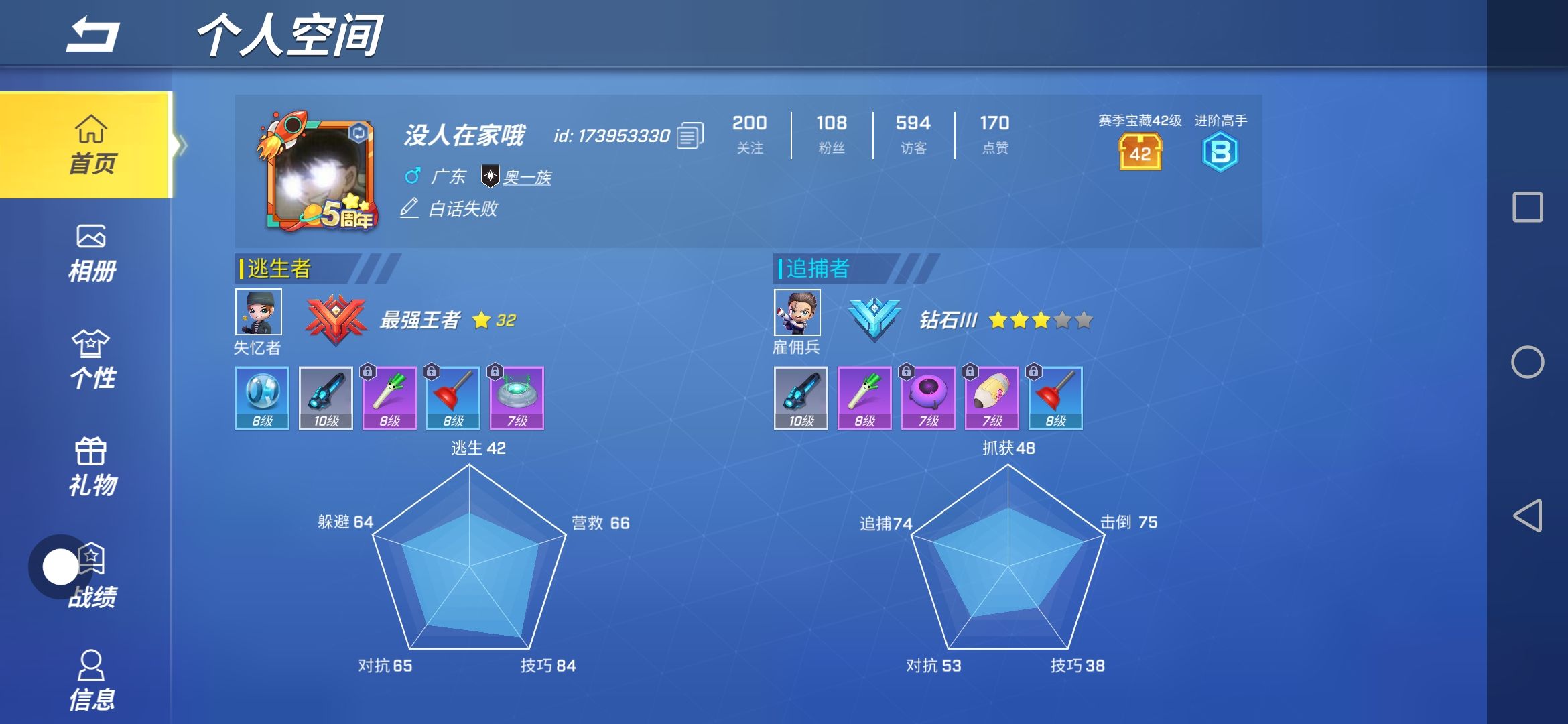 找师傅,要求道具卡等级比我高,能带飞我追捕,经常上线