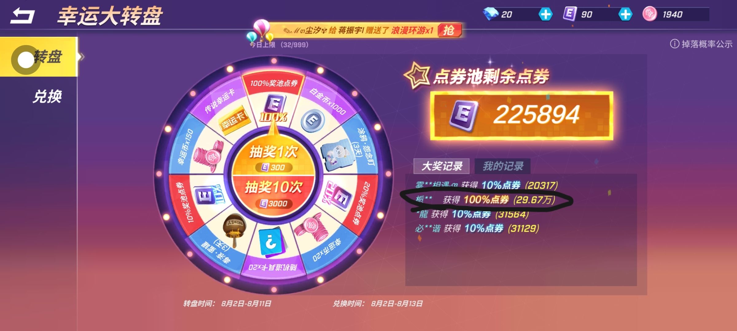这谁呀?!抽中100%点卷(羡慕)直接顶我几个月存的点卷