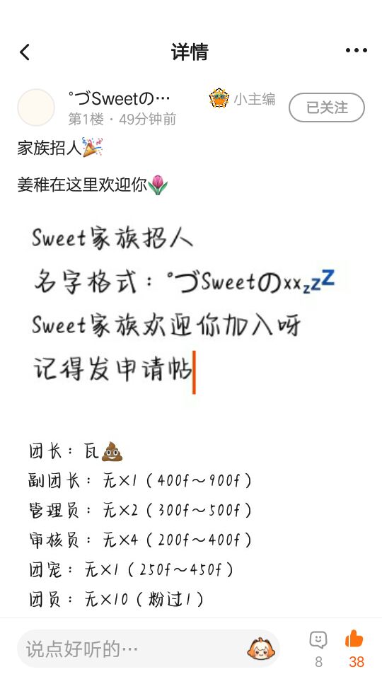 申请加入Sweet家族💦 @姜稚 希望能过💦