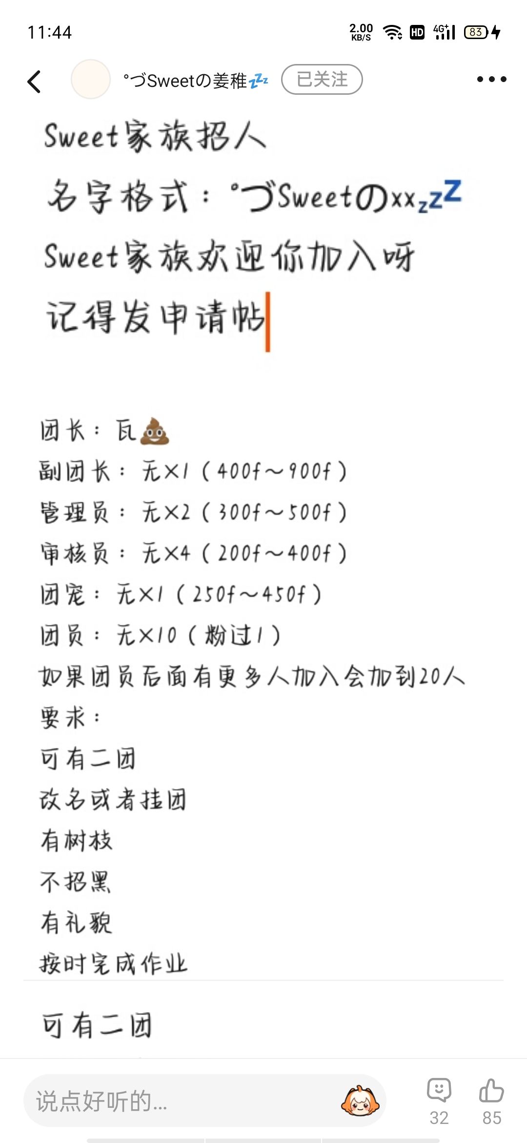申请加入姜稚家族,之前发过一次 ,但没发出去 。