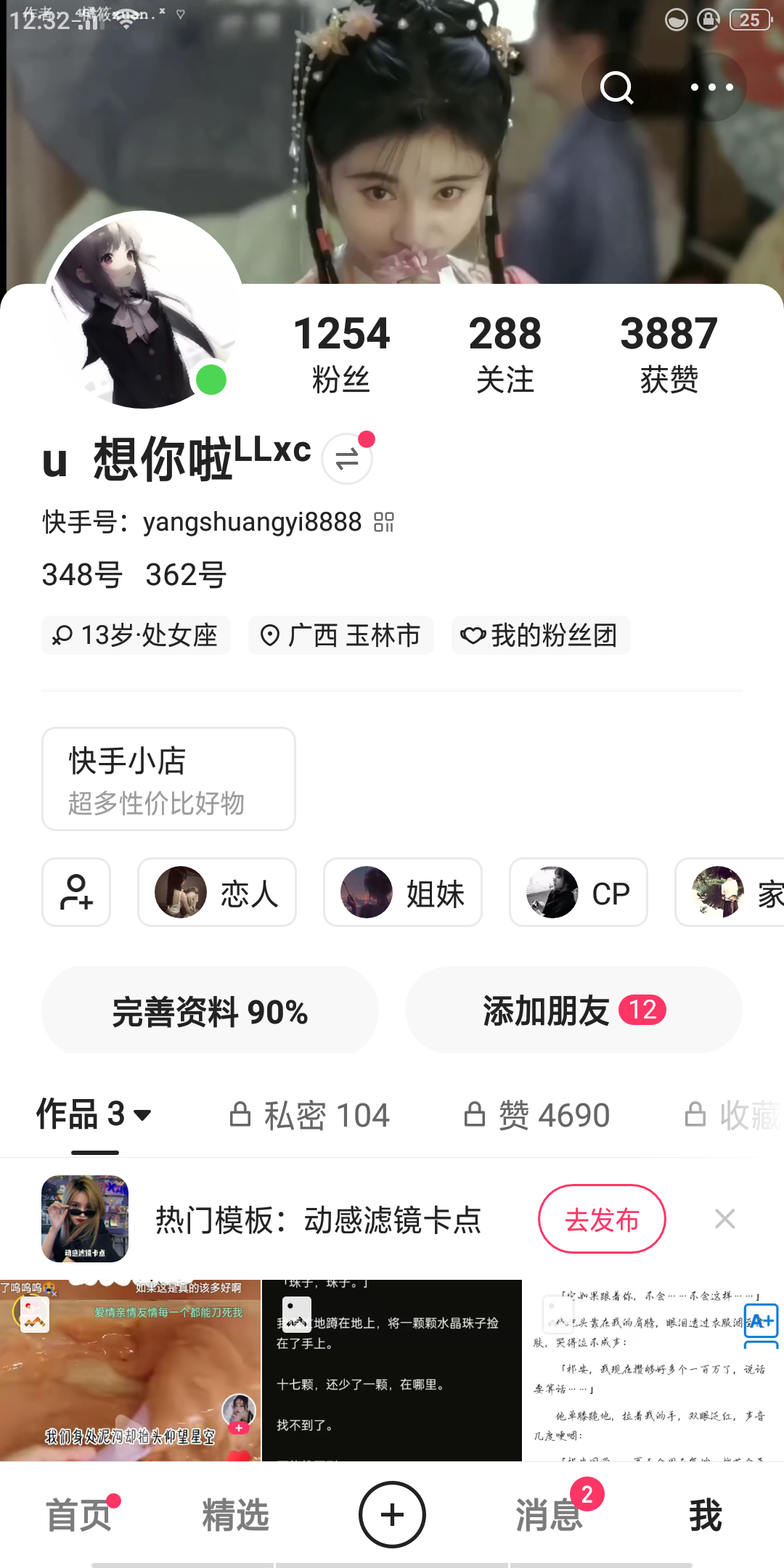 小梁你如果看到啦 就关注我好嘛 好想你