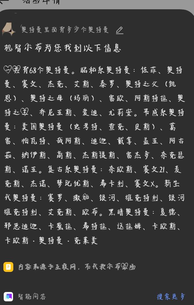 我问了小布一共有多少个奥特曼🙈看下面: