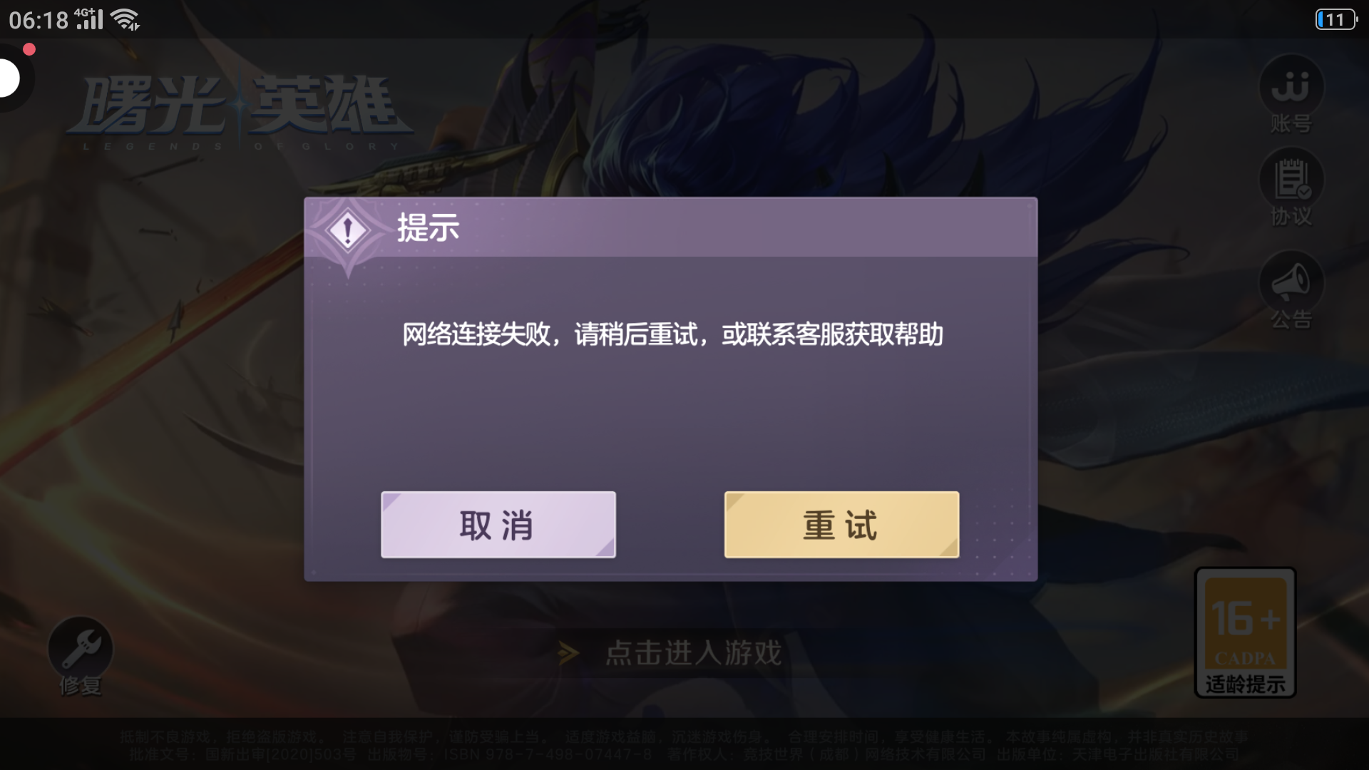 6,打到一半卡了出来,今天因为网络我信誉分扣20分了,赶紧修复啊,小曙!!!